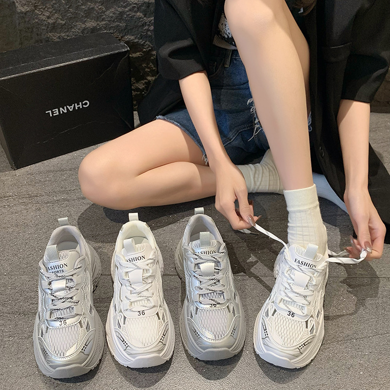 真皮厚底增高老爹鞋女ins潮夏季新款时尚百搭透气休闲运动鞋