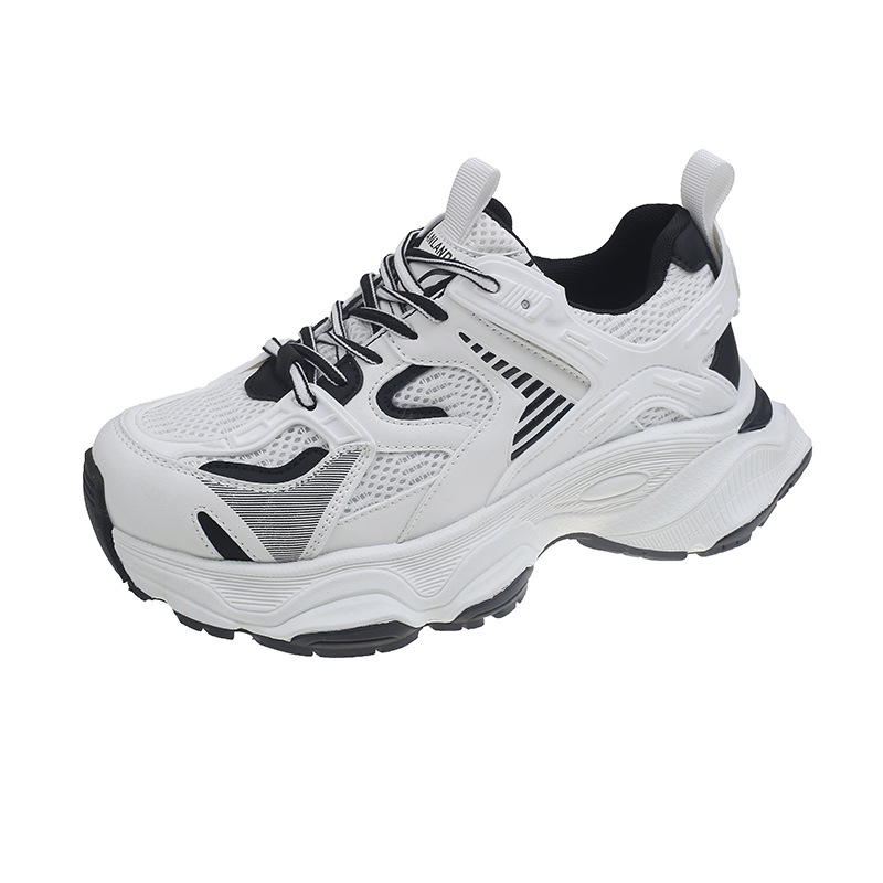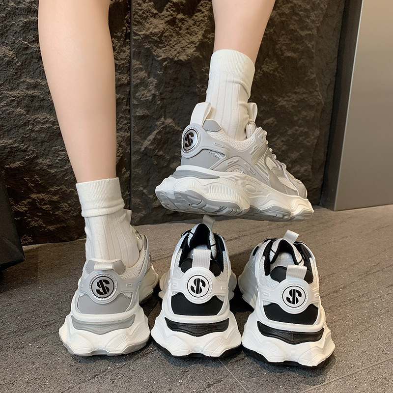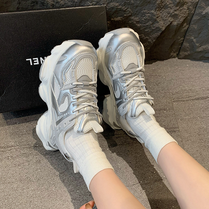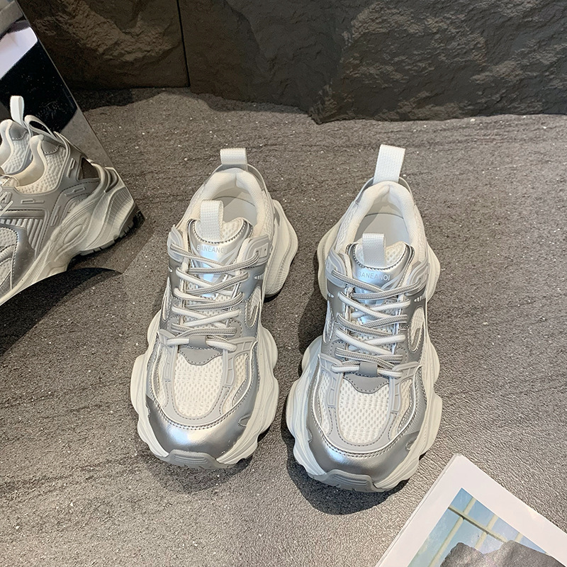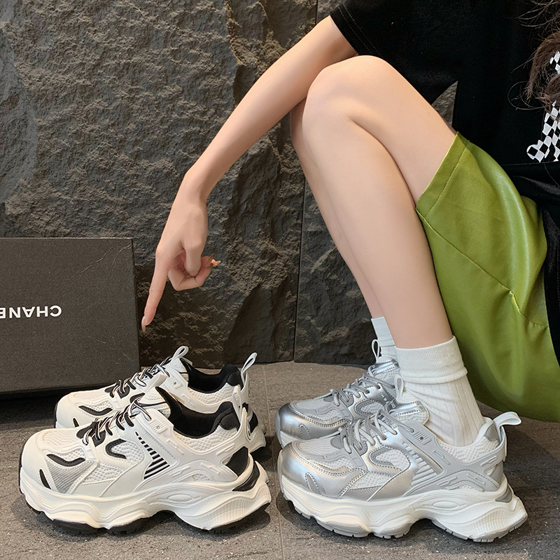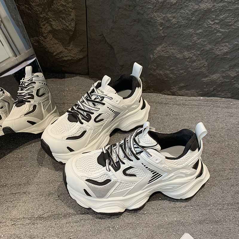 真皮厚底增高网面透气老爹鞋女春季新款小个子百搭运动休闲鞋