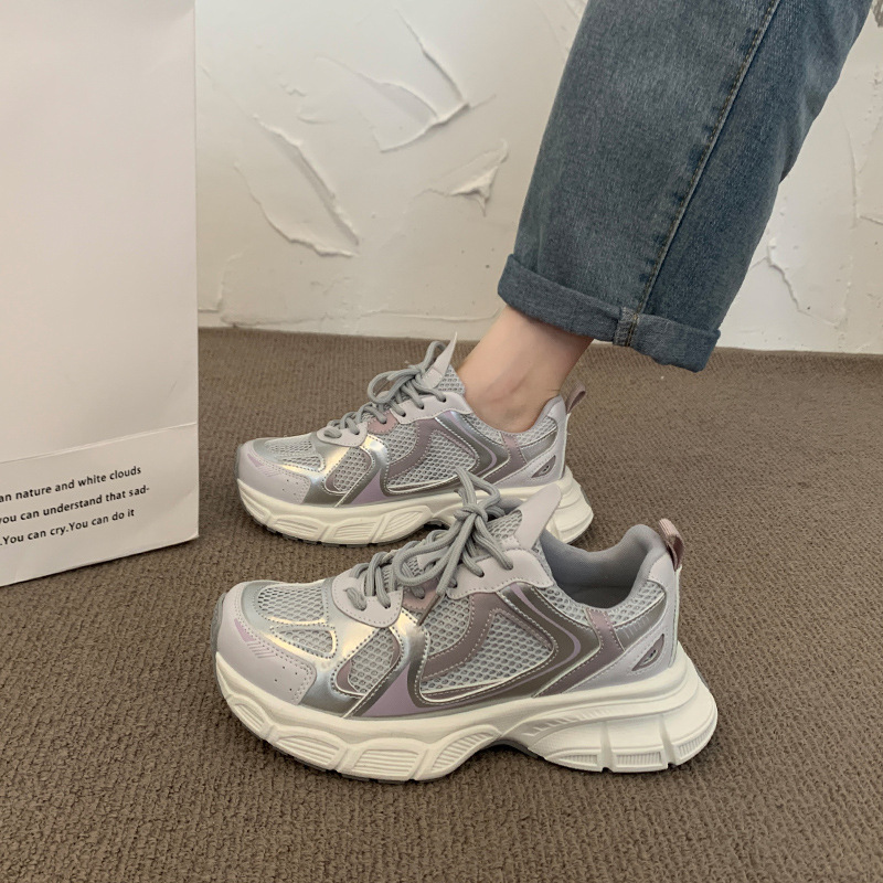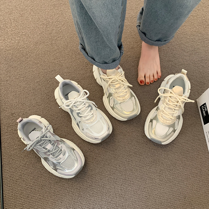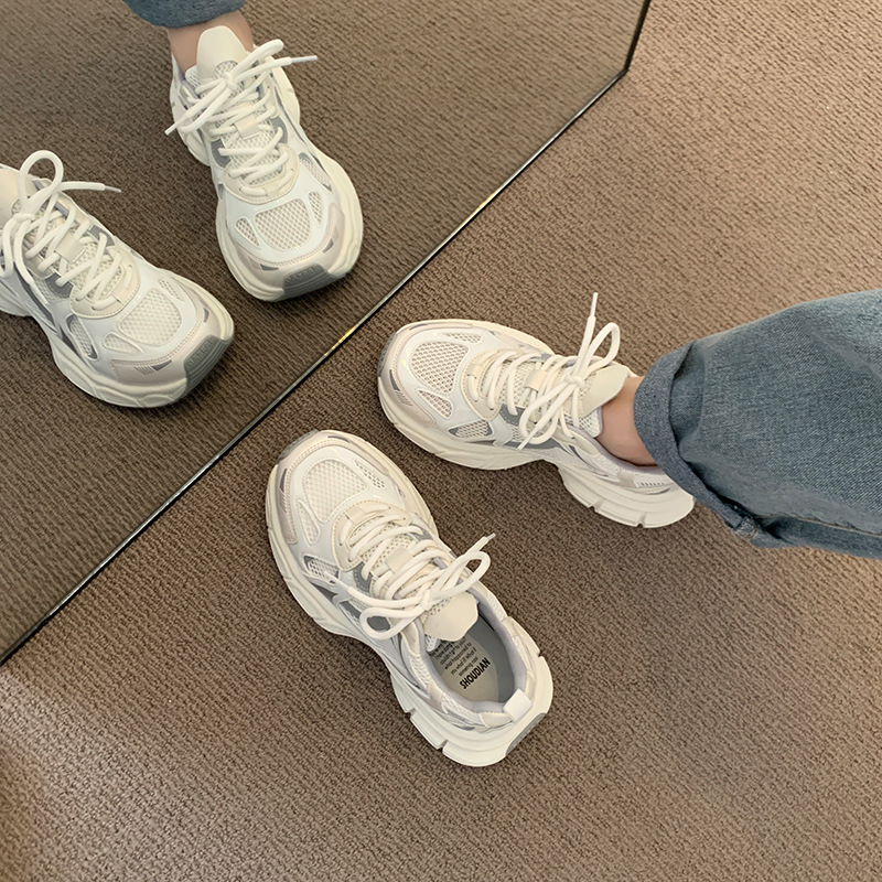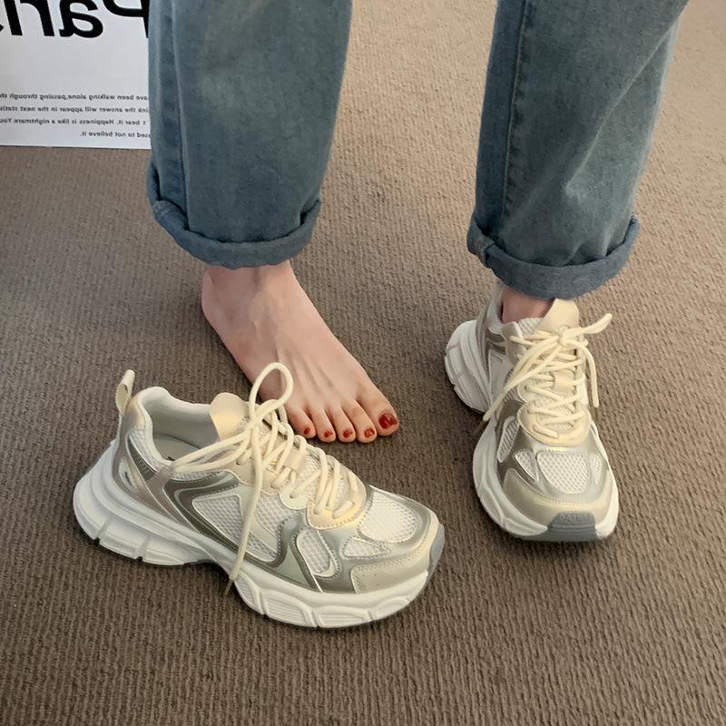 真皮松糕厚底网面透气老爹鞋女年夏季新款百搭运动休闲跑步鞋
