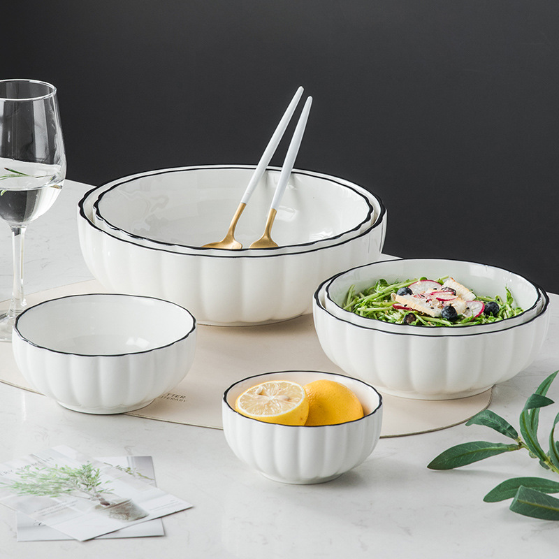 陶瓷碗筷套装网红日韩创意小清新南瓜碗黑线餐具碗碟盘酸菜鱼大碗