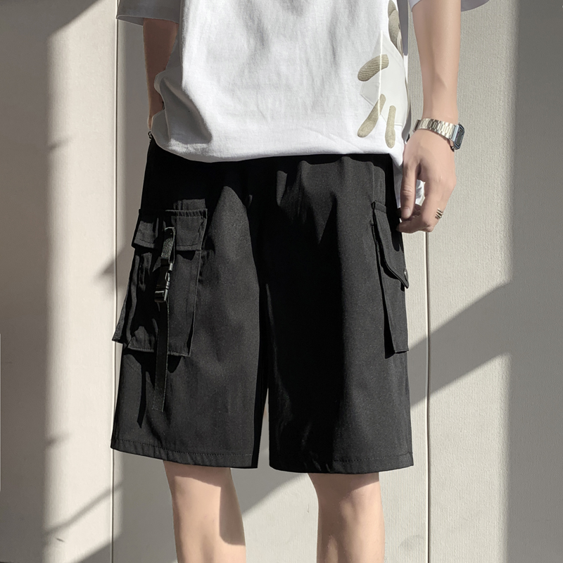 港风嘻哈工装短裤男潮牌夏季百搭五分裤韩版个性大口袋直筒裤