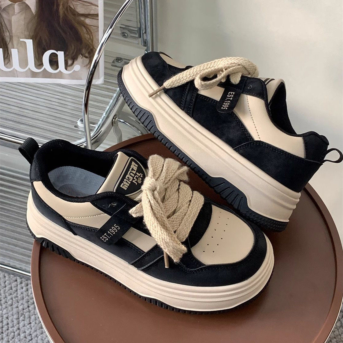 美拉德厚底板鞋女款春季新款面包鞋子女鞋学生百搭休闲运动鞋