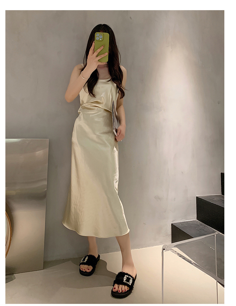 夏季新款舒适休闲不规则下摆宽松吊带度假连衣裙女