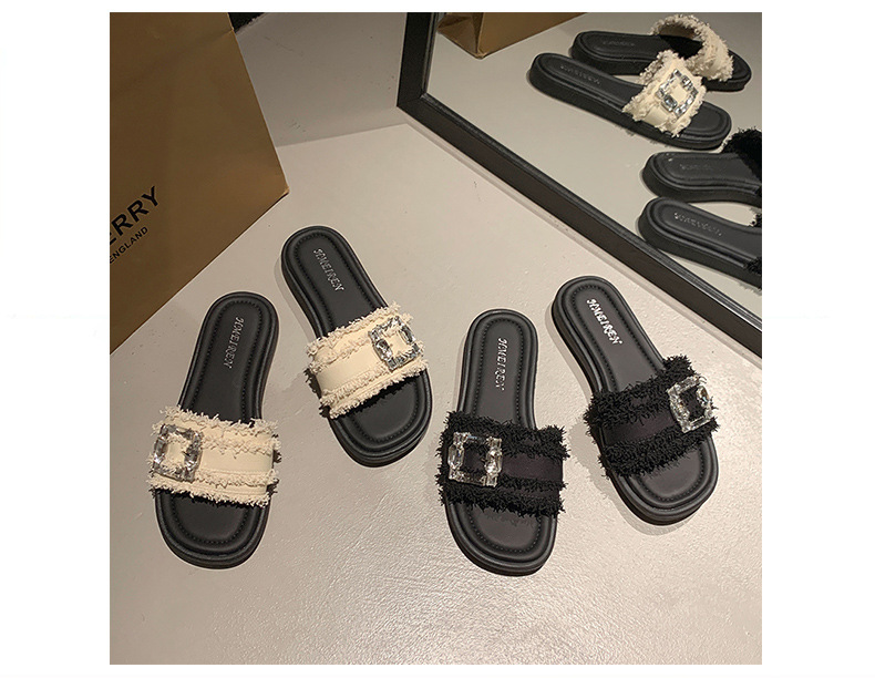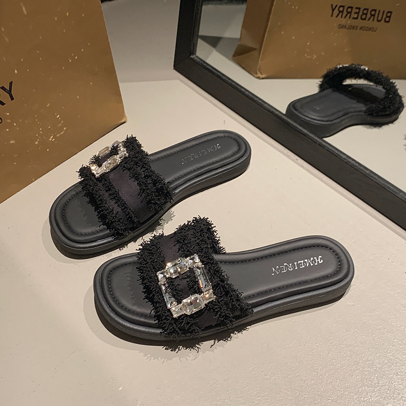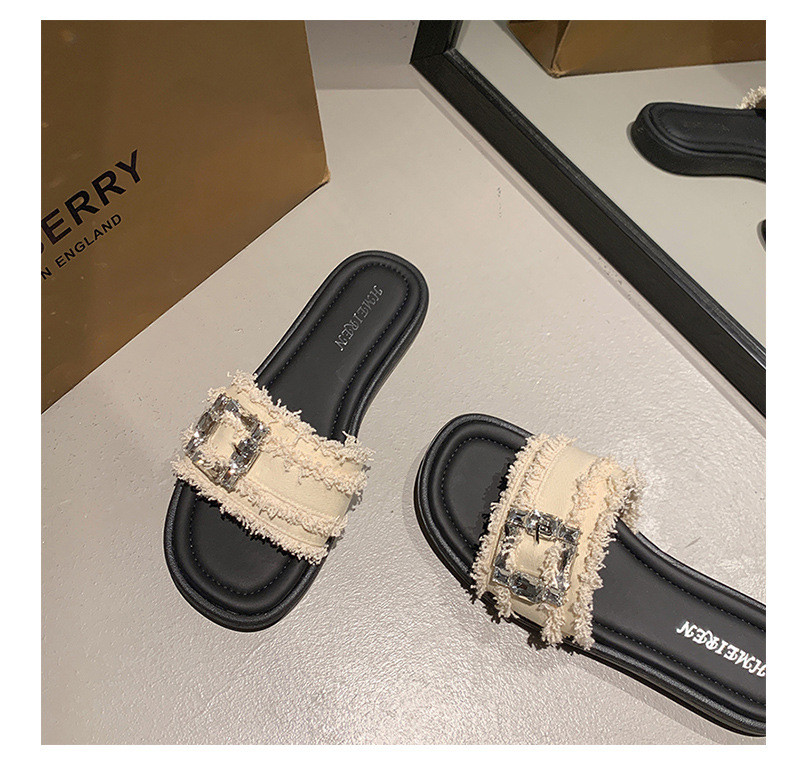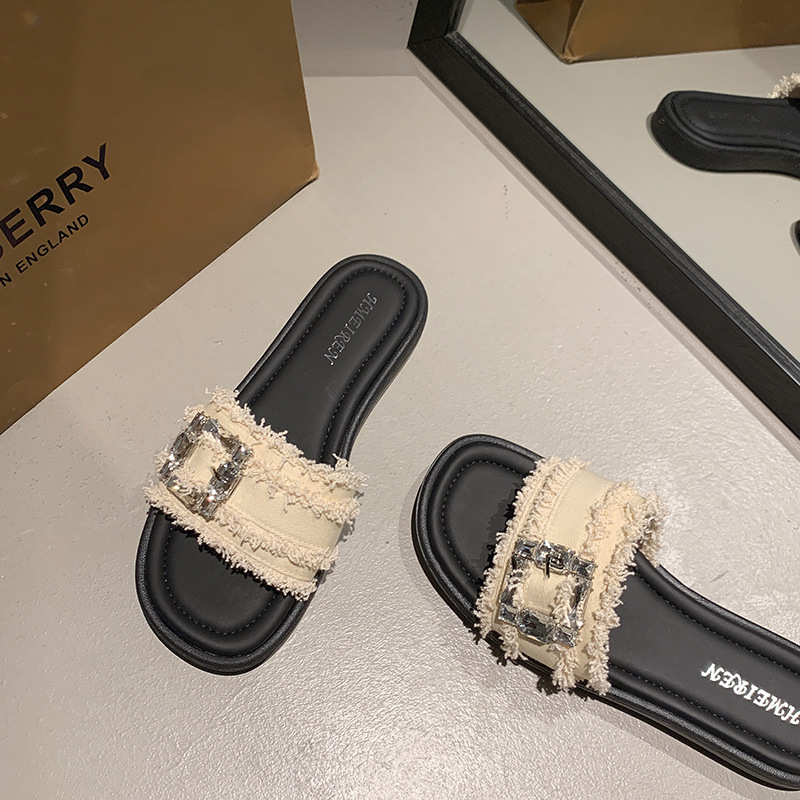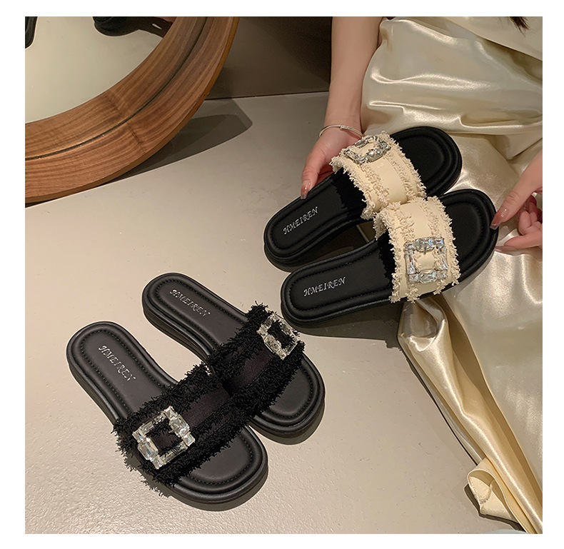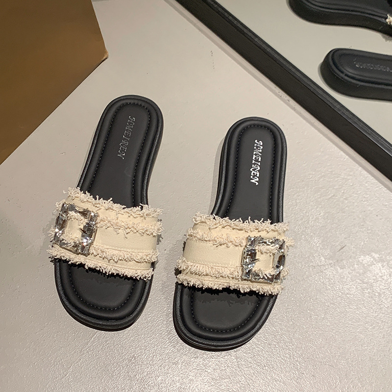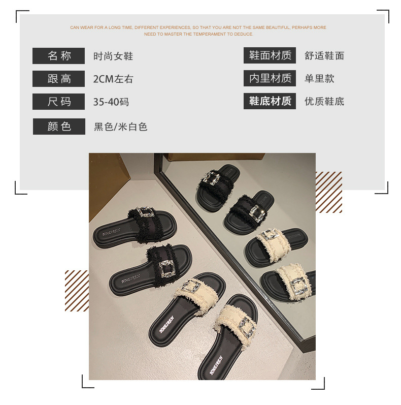 法式小香风拖鞋女夏外穿新款时尚百搭平底一字拖沙滩凉拖鞋