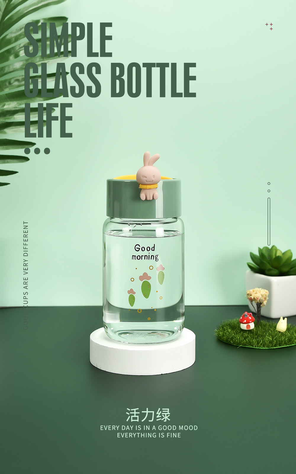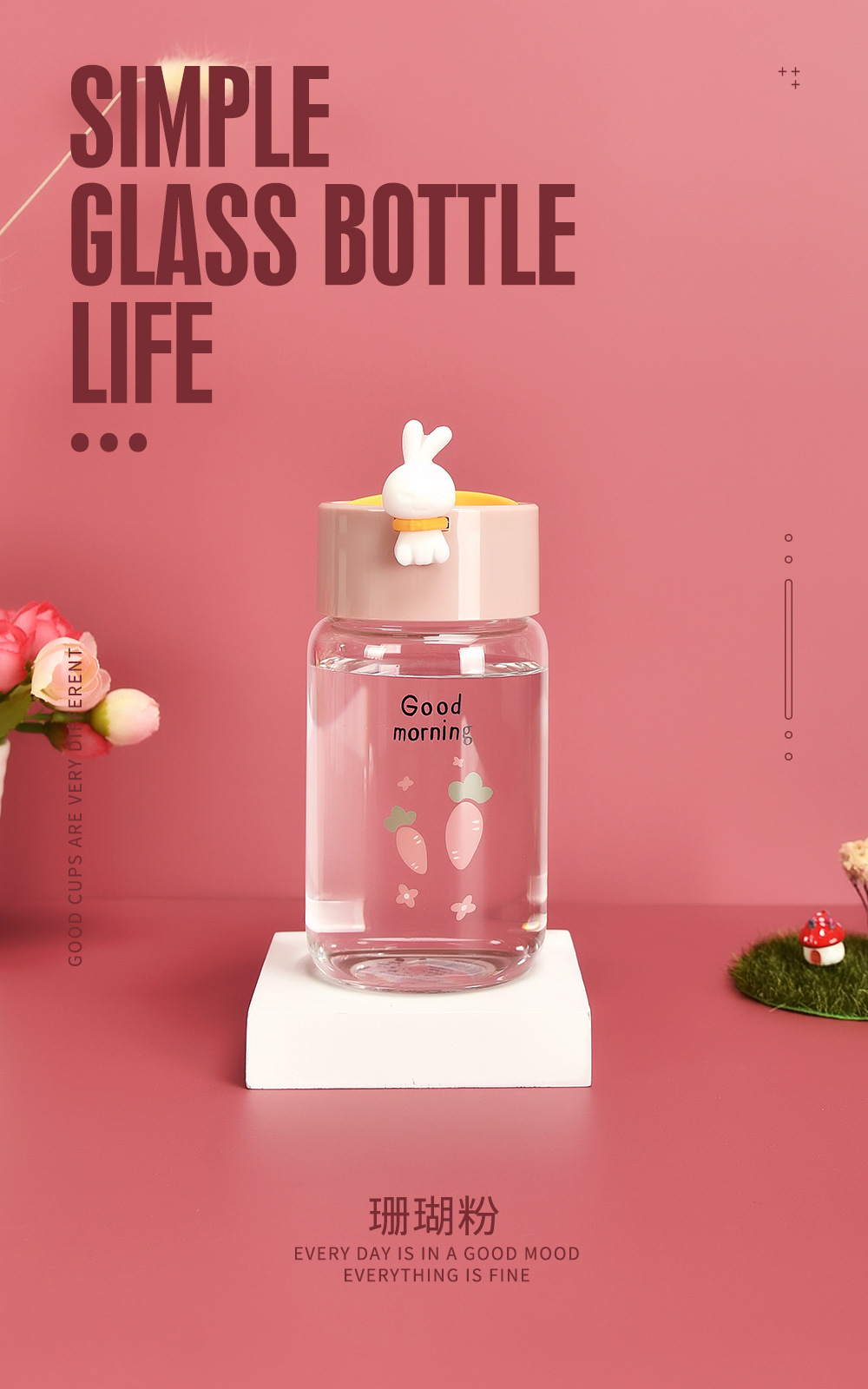 可爱兔子高硼硅玻璃杯地推摆摊简约卡通随手杯活动礼品水杯子