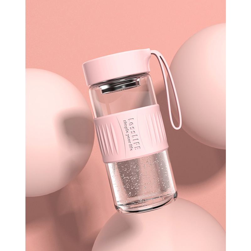 玻璃杯简约随手杯子带杯套茶漏办公户外个性网红水杯