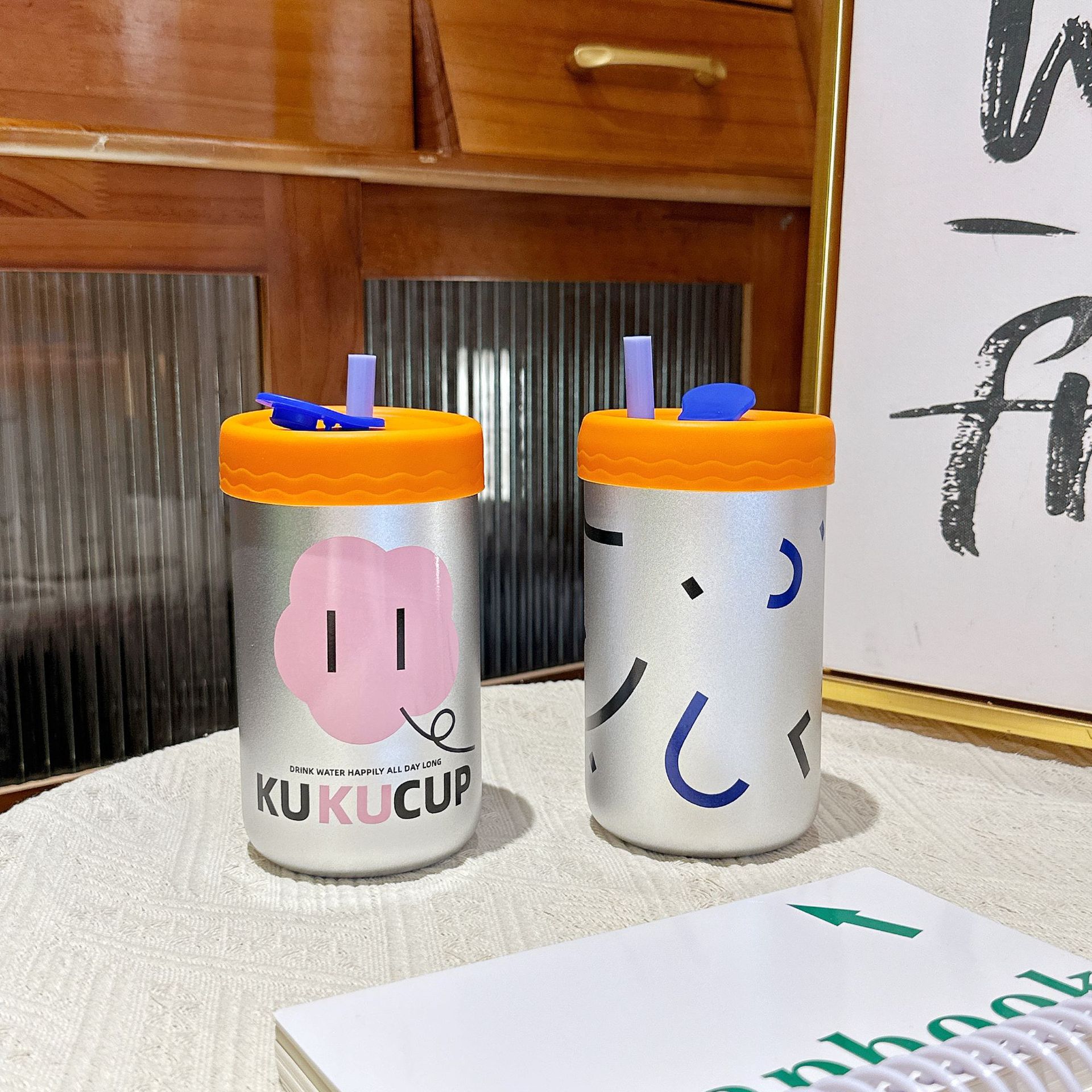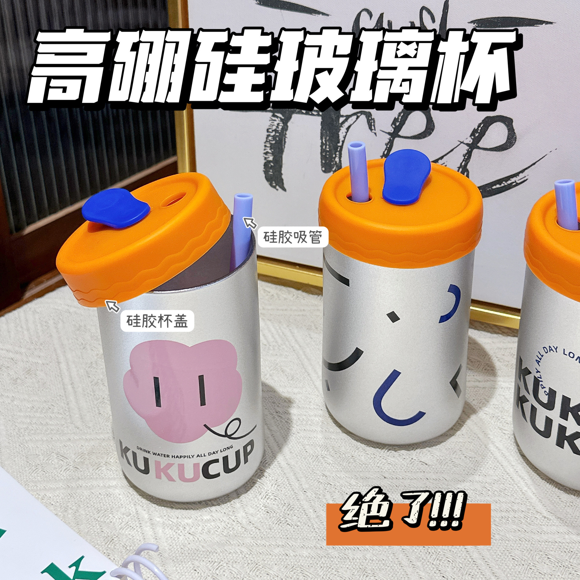 ins银色玻璃杯高颜值办公专用咖啡水杯金属感家用简约吸管杯