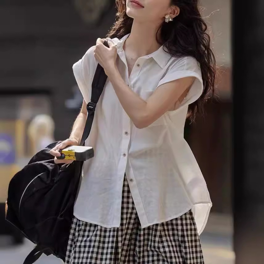 法式复古小飞袖白色短袖衬衫女设计感气质衬衣夏新款薄款宽松上衣