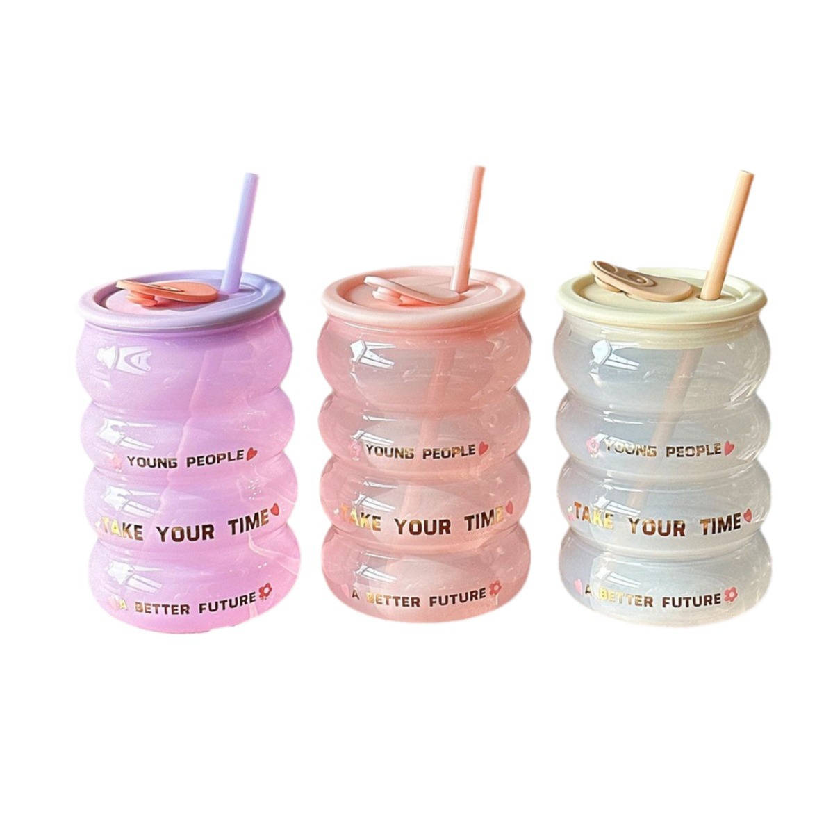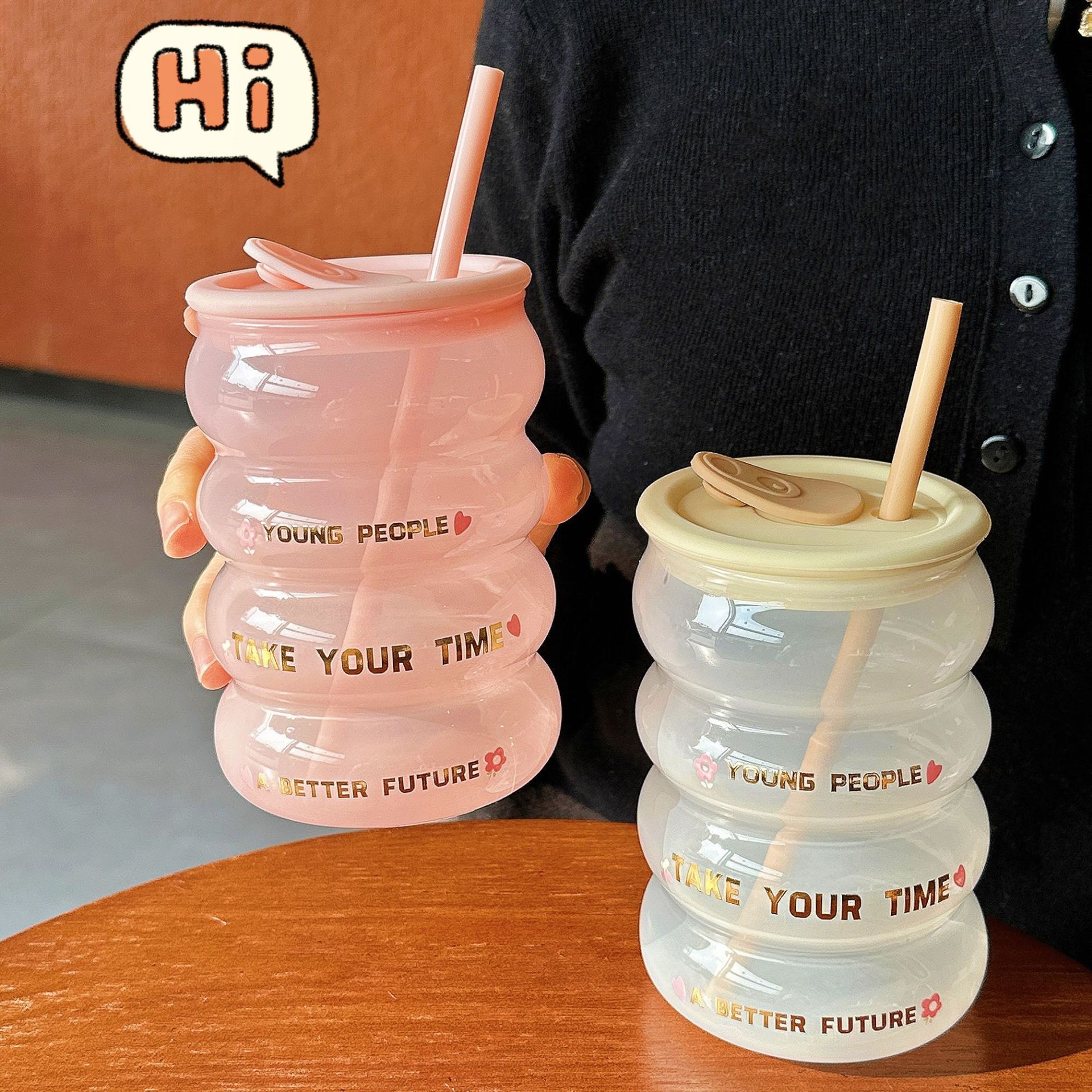创意异形玻璃杯女生高颜值闺蜜水杯办公家用ins风时尚少女吸管杯