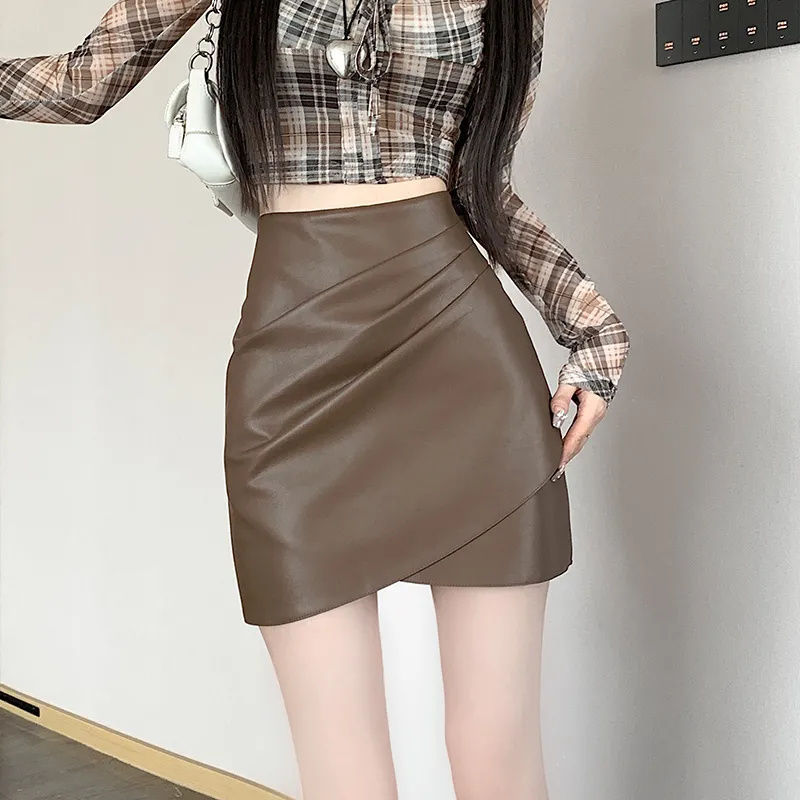 半身裙女春秋季新款不规则PU辣妹风高腰显瘦a字包臀短款皮裙