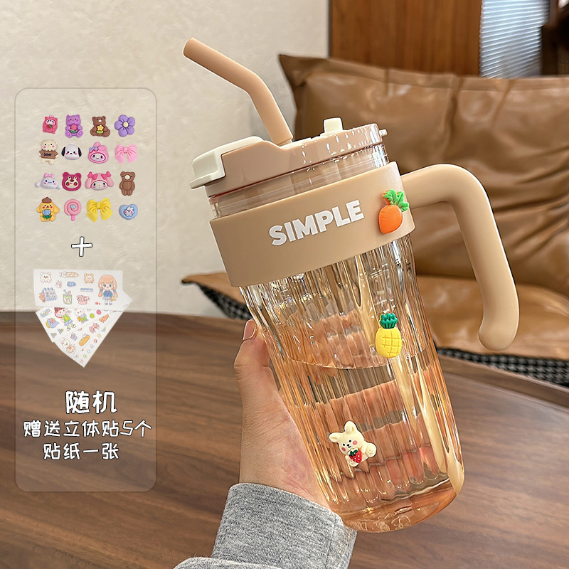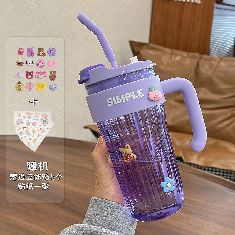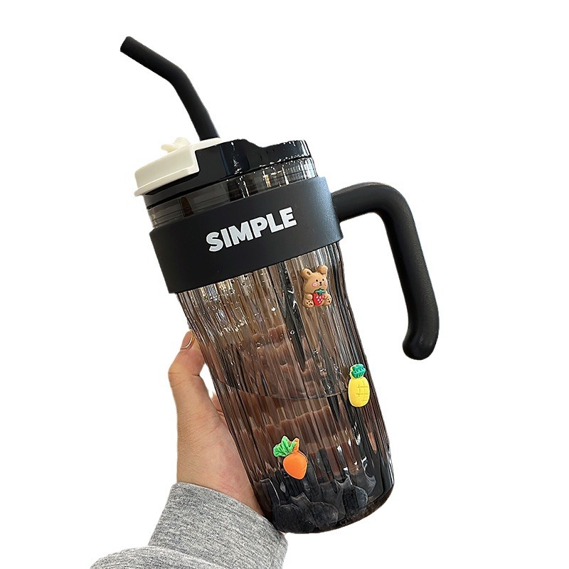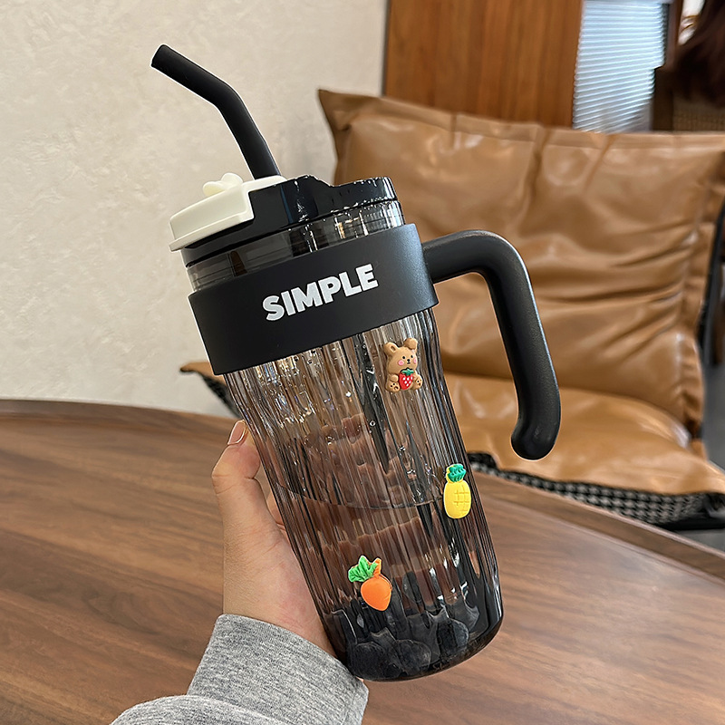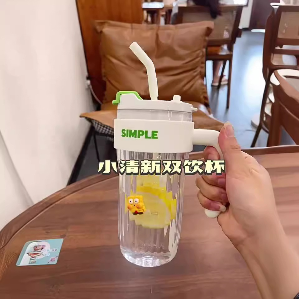新款办公室带手柄马克杯夏季双饮塑料杯男女生大容量便携吸管水杯