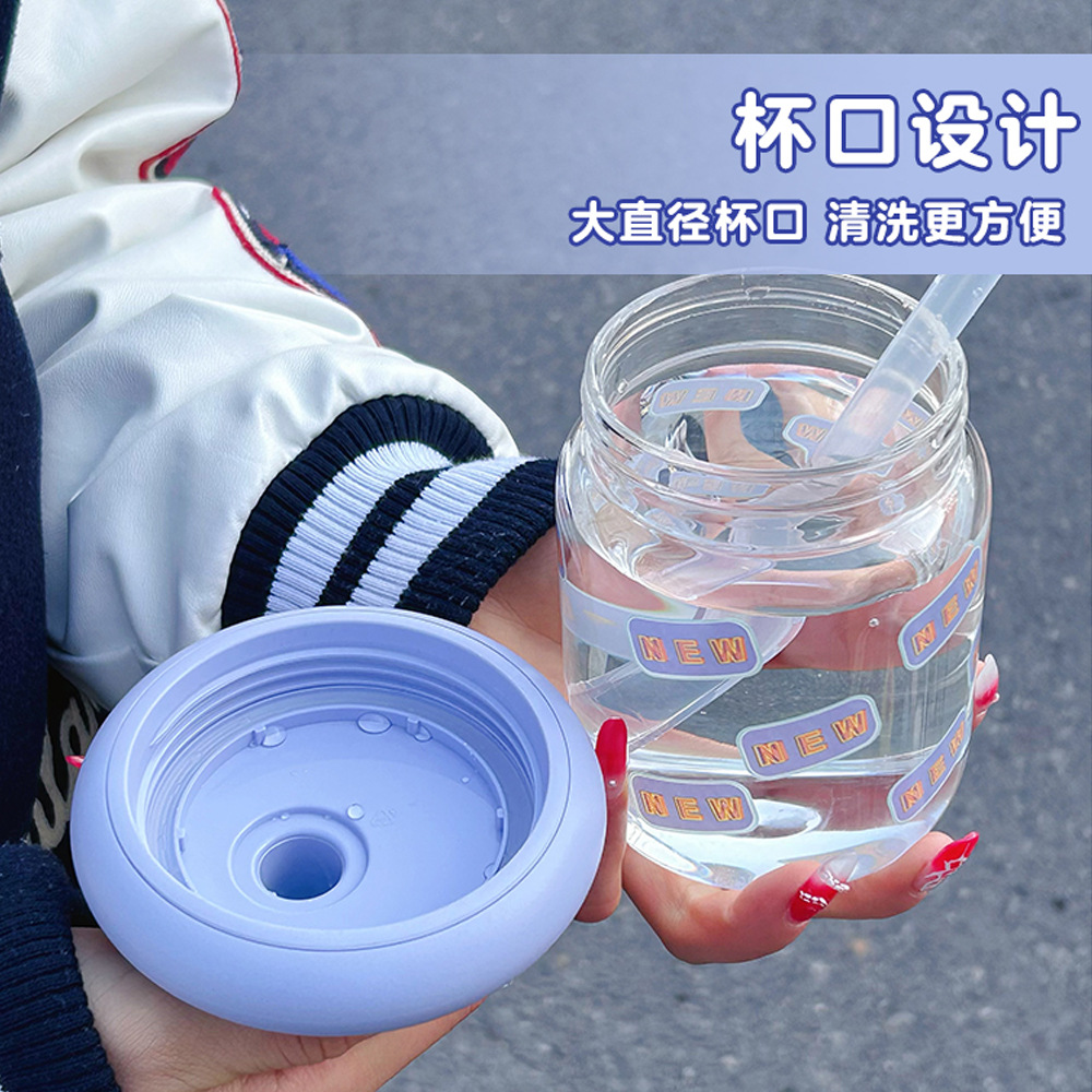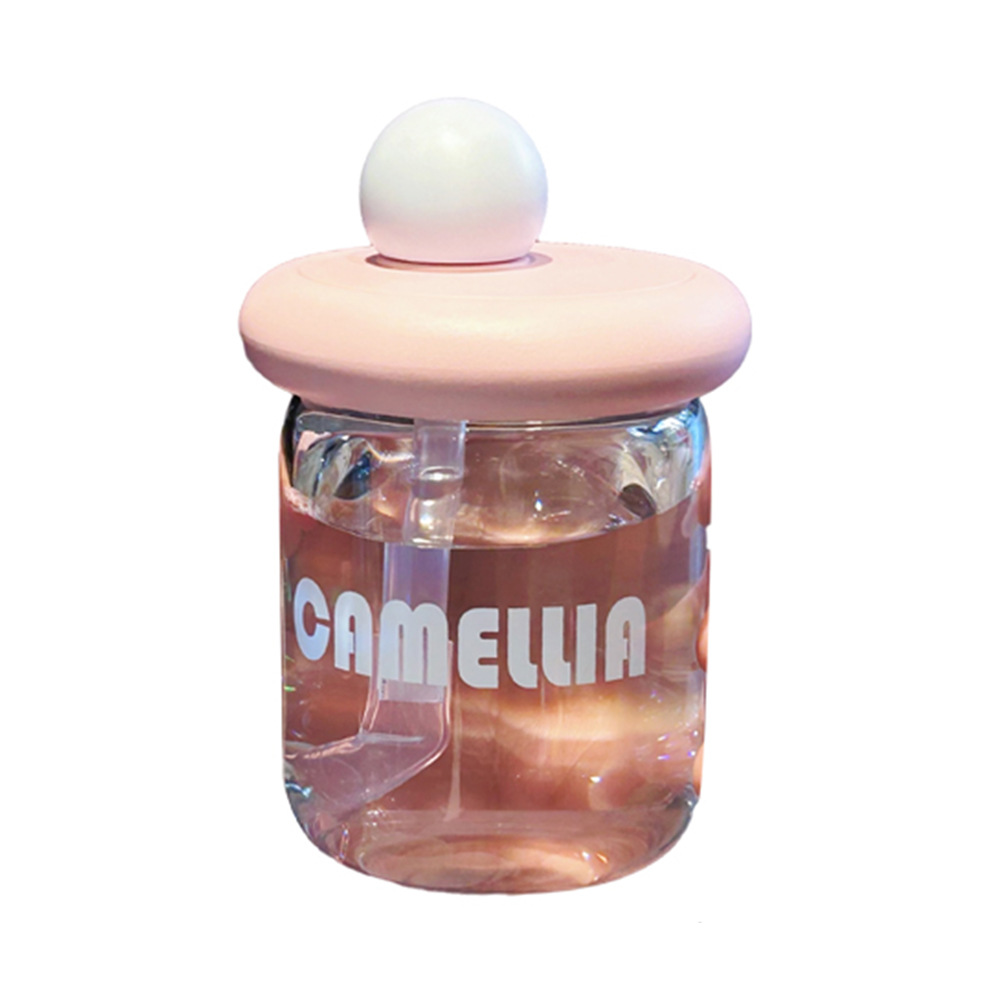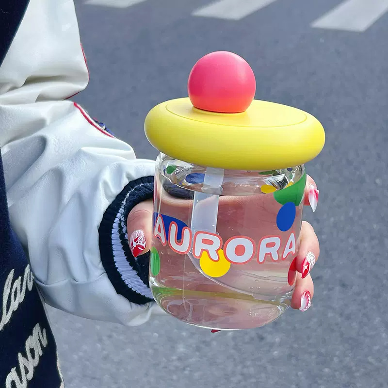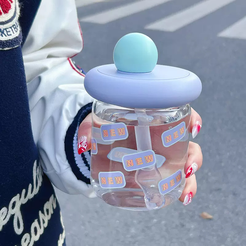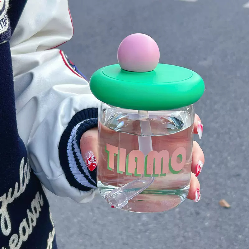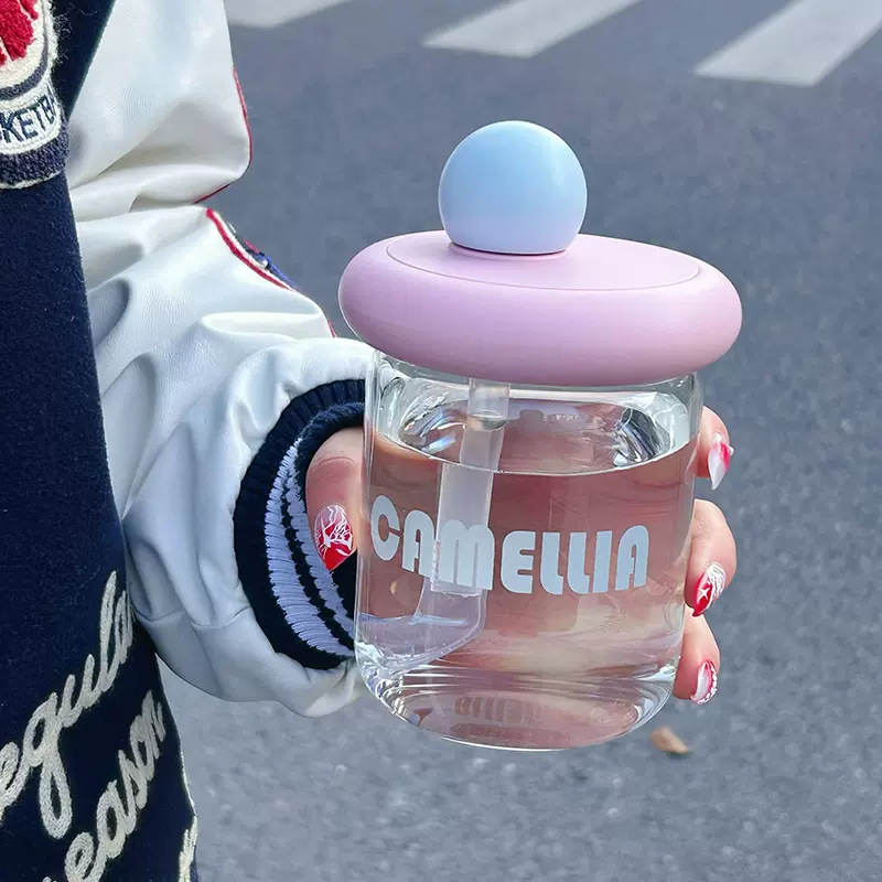 可爱小巧玻璃杯高颜值带盖办公室吸管杯时尚简约学生家用创意水杯