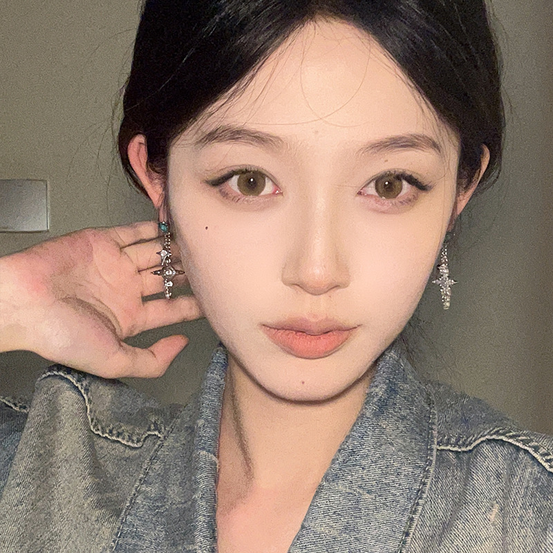 气质轻奢微镶爱心锆石十字架耳环新款小众高级感耳钉耳饰女