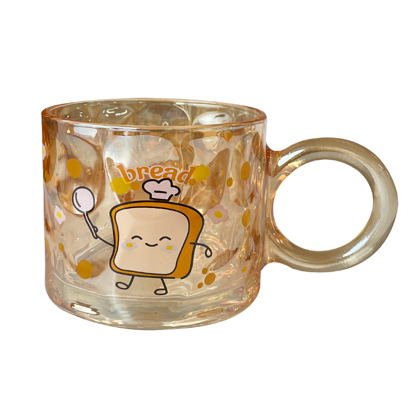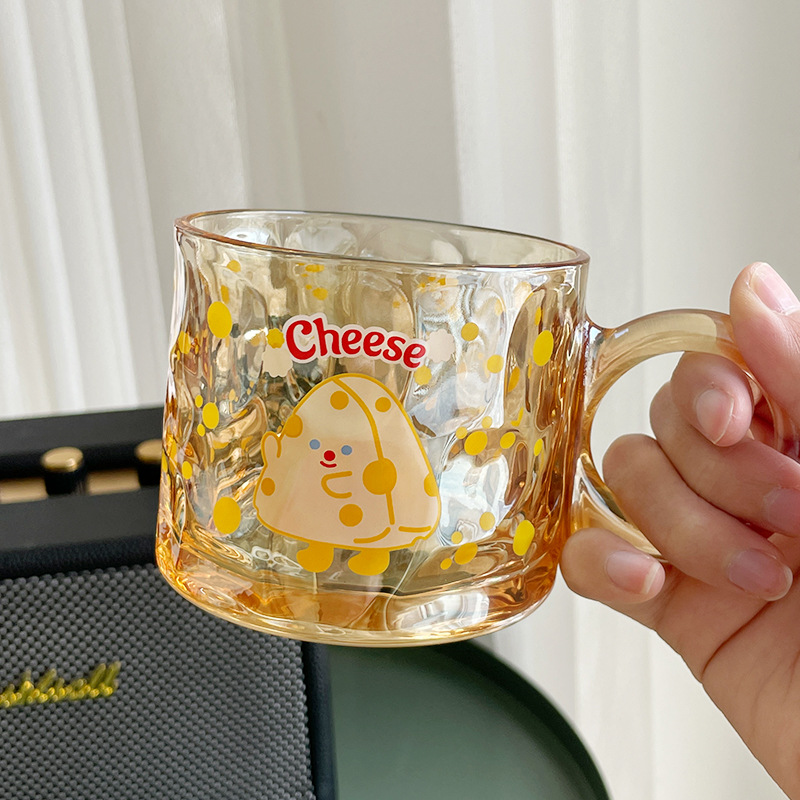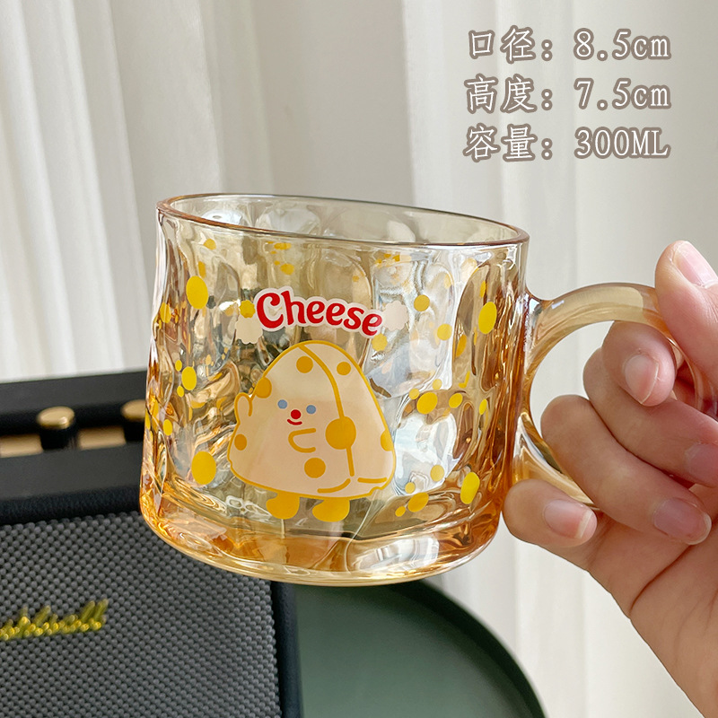 卡通玻璃杯ins大耳朵水杯隔热带把手咖啡杯高颜值宿舍家用牛奶杯