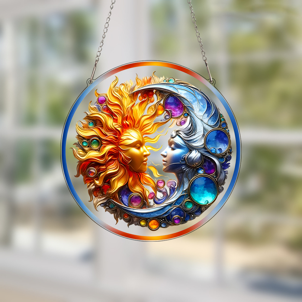 跨境卡通金太阳与灰月亮亚克力窗户门挂艺术节日场景装饰挂件挂饰