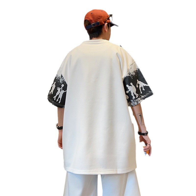 夏季新款男士T恤 假两件港风美式宽松圆领情侣短袖T恤男