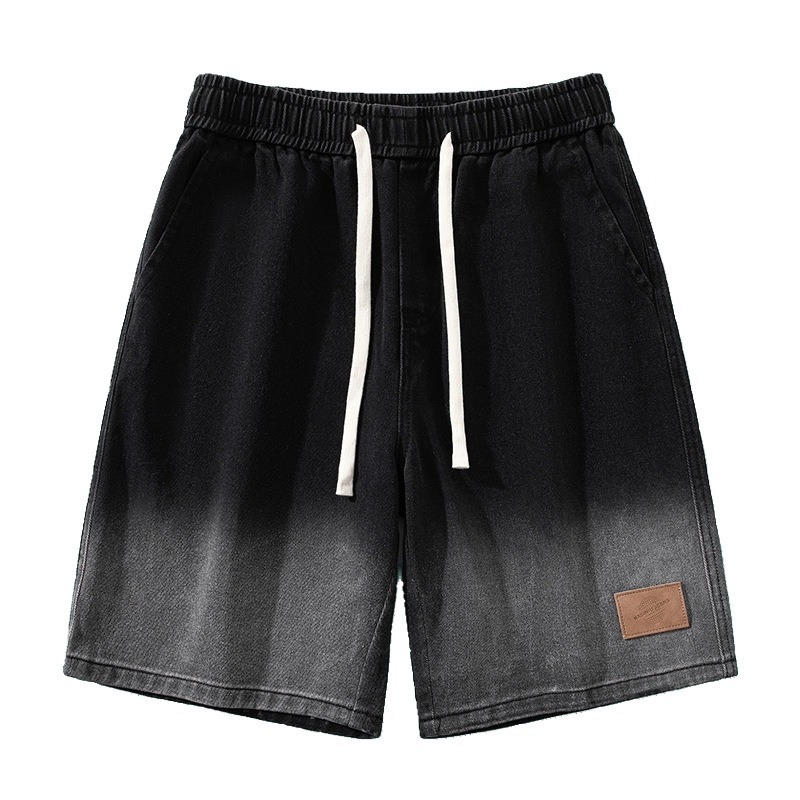 新款男士休闲牛仔裤 韩版时尚松紧腰垂感渐变复古男士五分裤