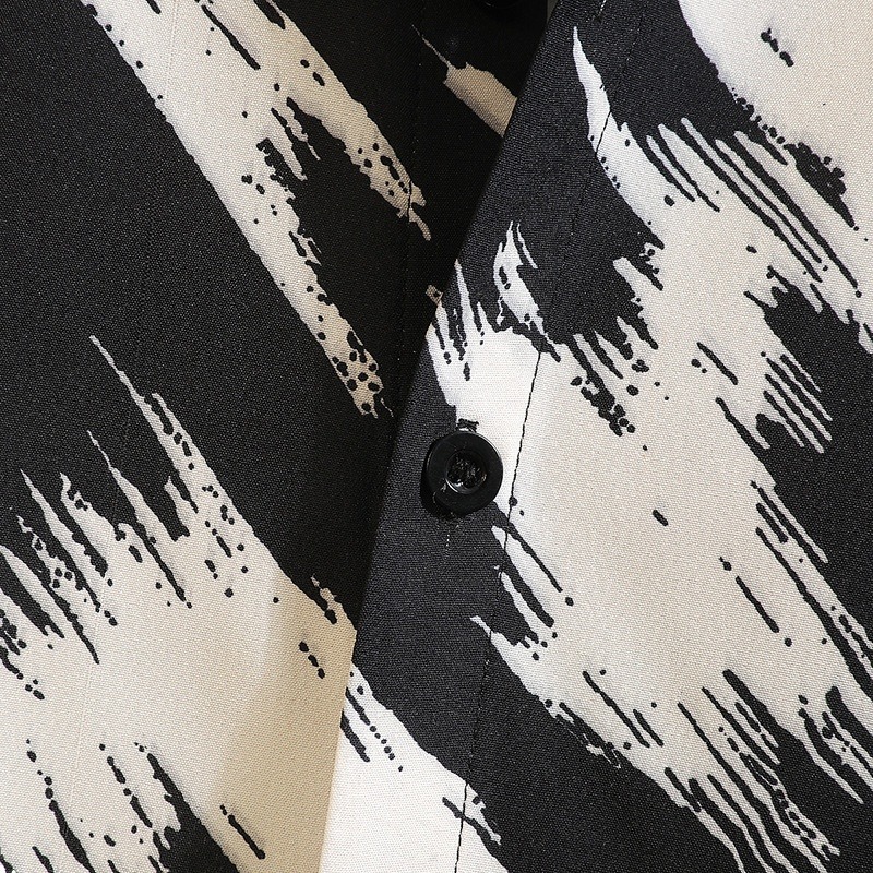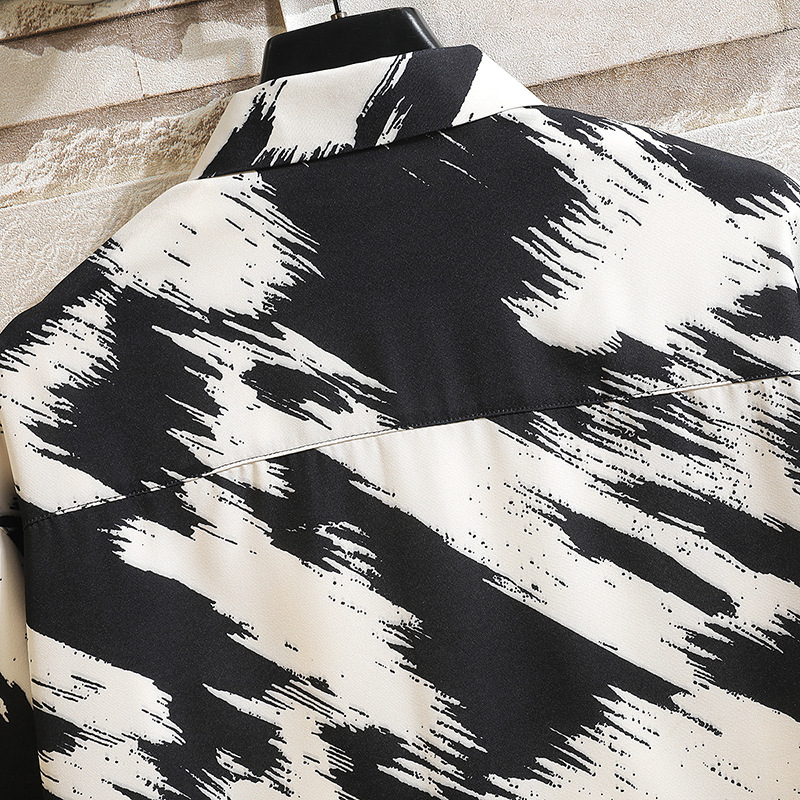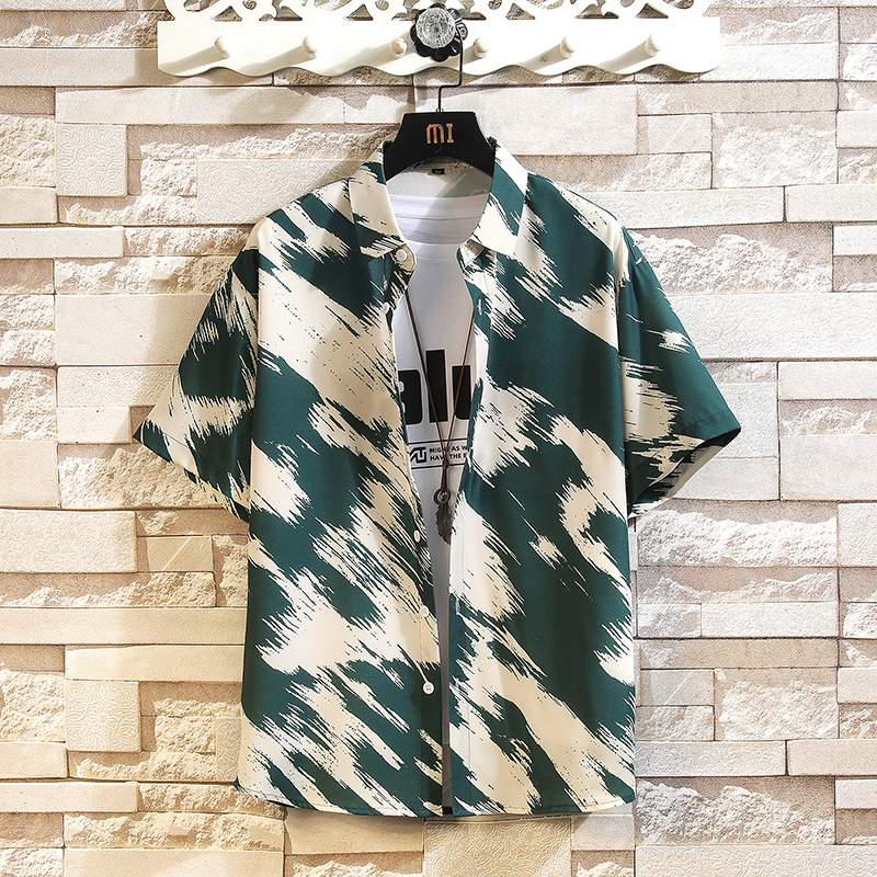 新款男士冰丝印花短袖衬衫潮牌时尚宽松大码休闲衬衣男上衣
