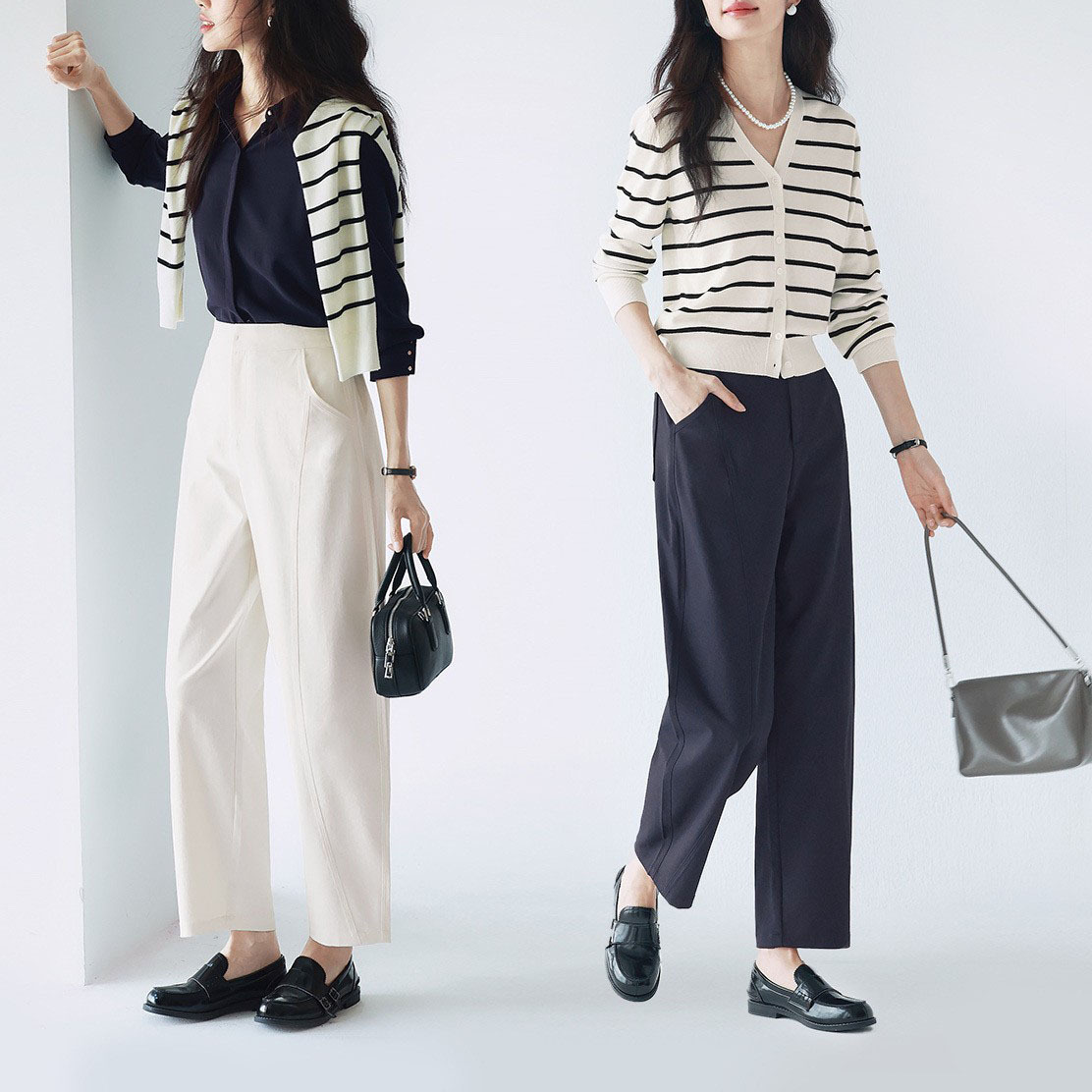 伊芙丽时髦仿棉感抗皱职场九分香蕉裤2025春夏新款百搭显瘦裤子女