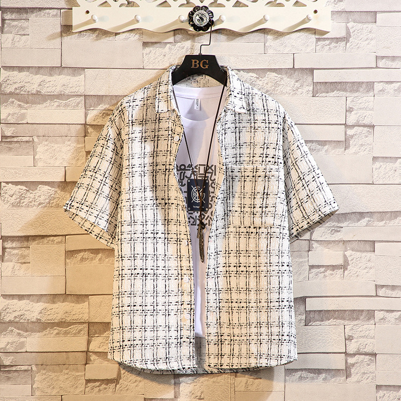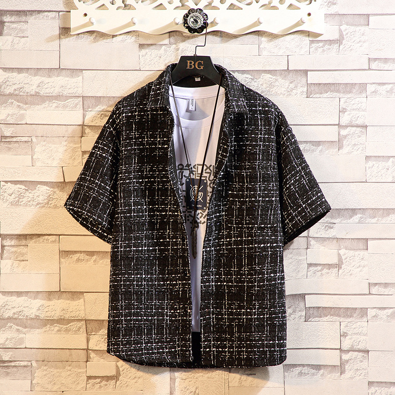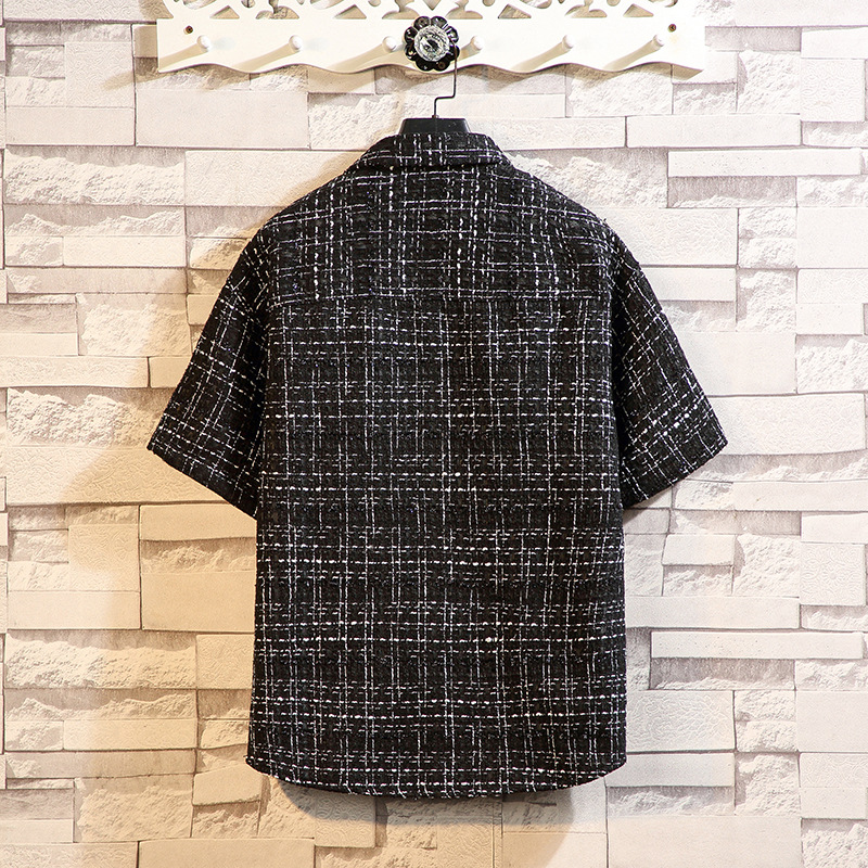 新款男士条纹衬衣 时尚痞帅宽松休闲短袖小香风男士衬衫外套