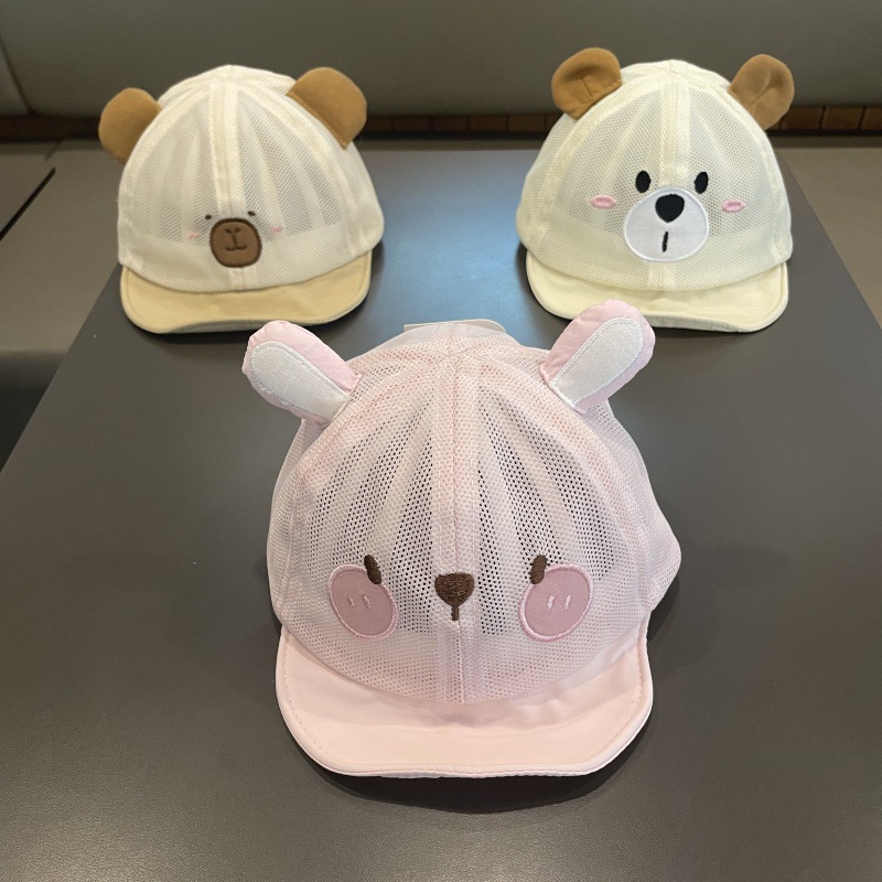 婴儿帽子夏季薄款网眼透气防晒鸭舌帽小月龄女宝宝可爱小熊遮阳帽