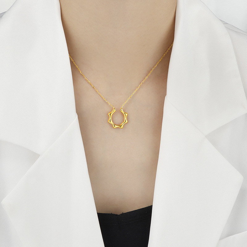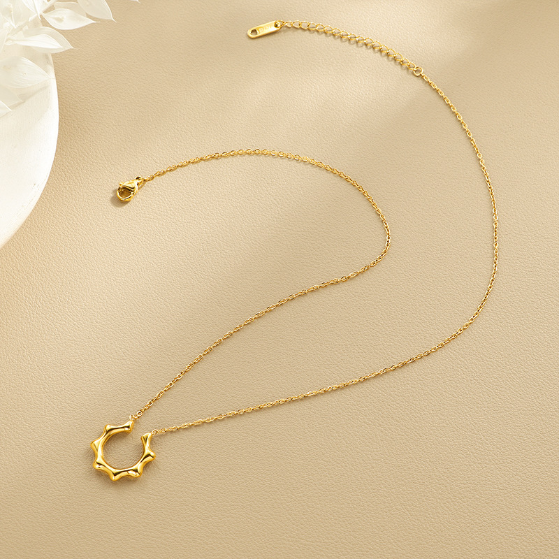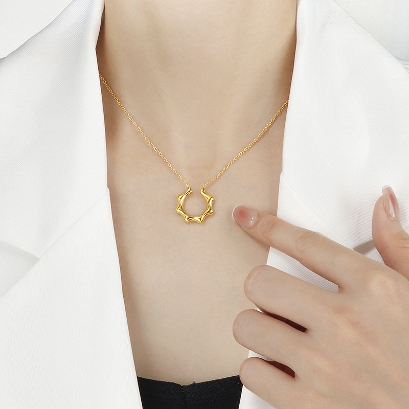 韩系太阳项链女轻奢小众钛钢金色锁骨链个性气质百搭几何项链女