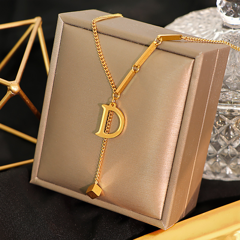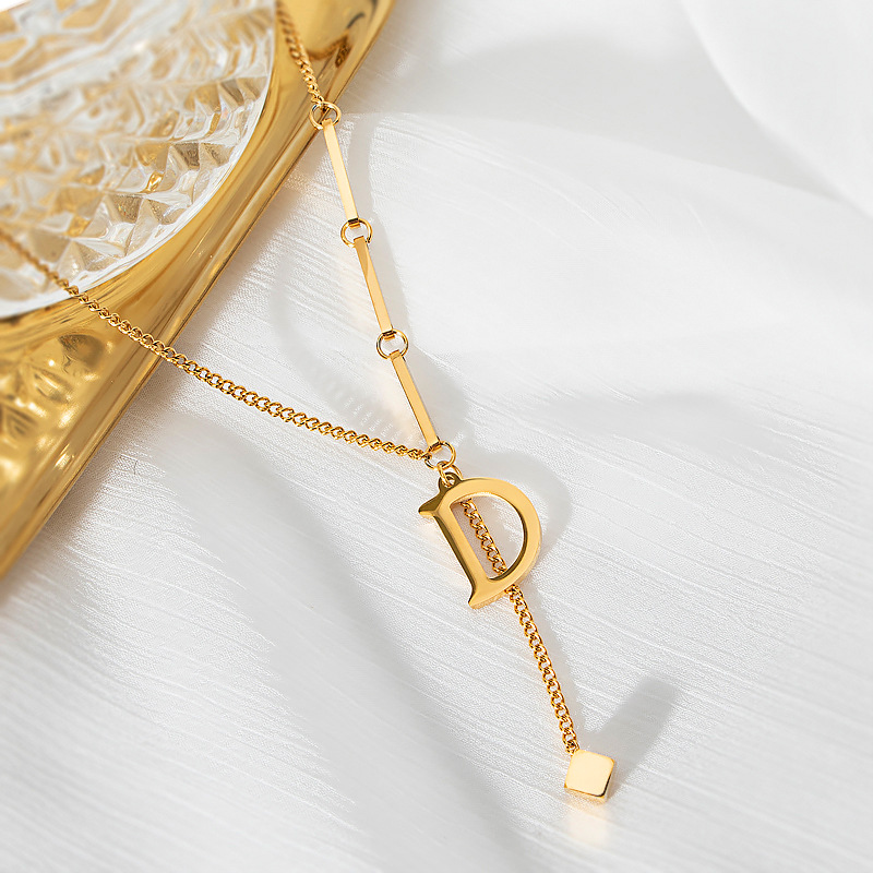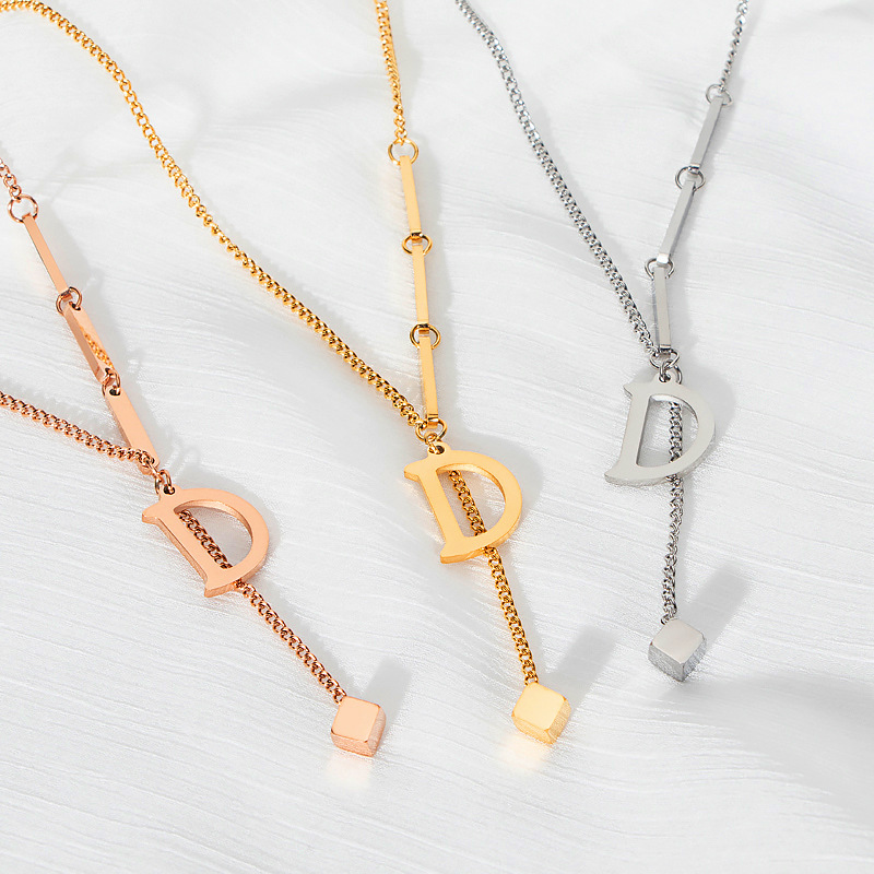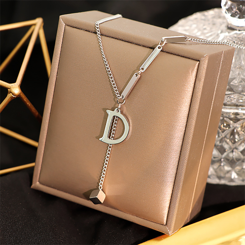 新款欧美爆款简约D字钛钢项链轻奢冷淡风流苏锁骨链侧身链颈链女