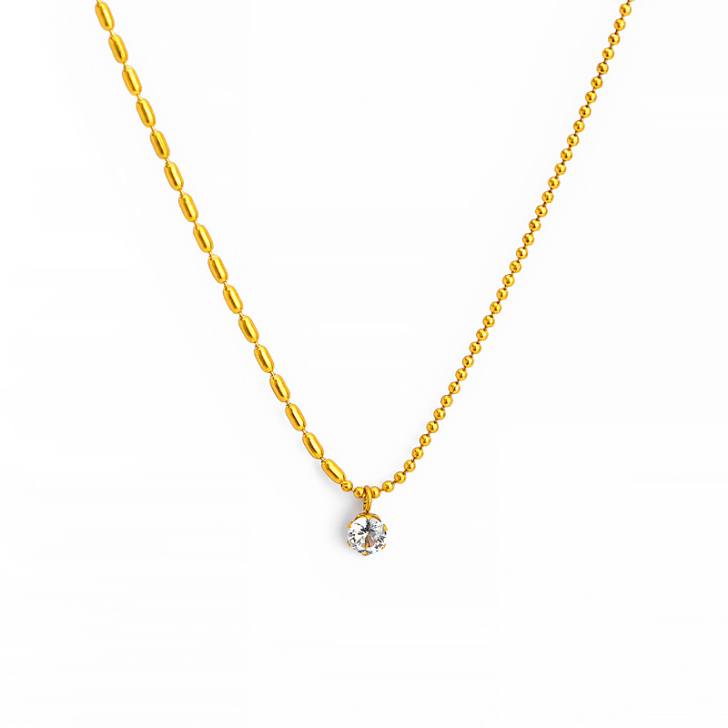 钛钢单钻项链女轻奢法式小众设计高级感设计爪钻锆石米粒波珠链女