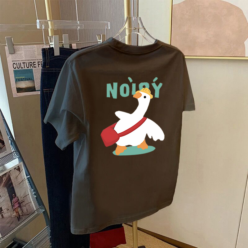 2025夏季新款灰色纯棉短袖t恤女宽松百搭卡通印花时尚减龄上衣潮