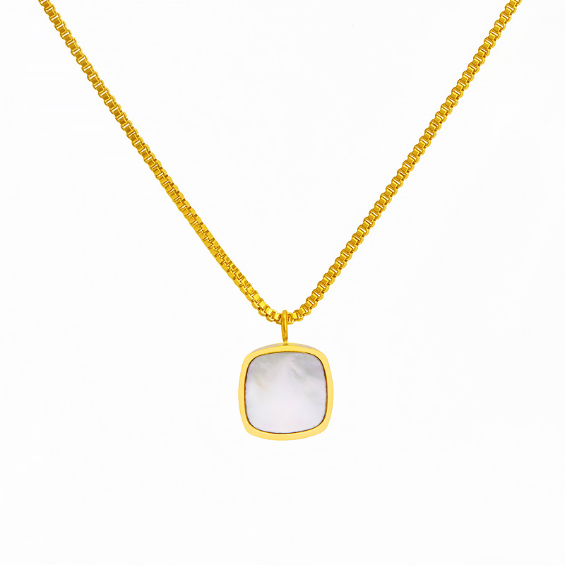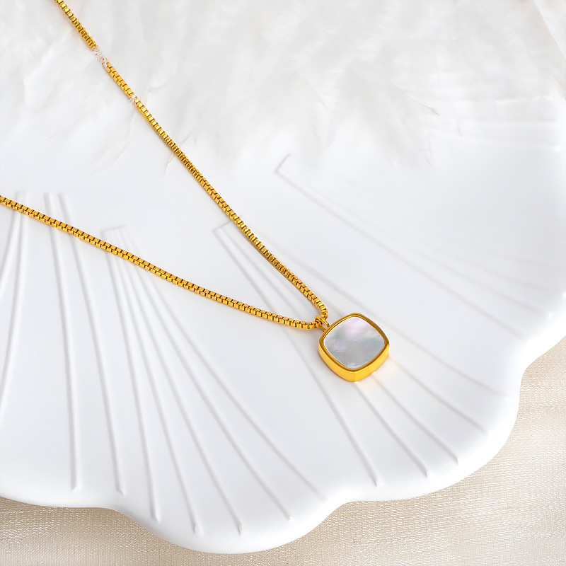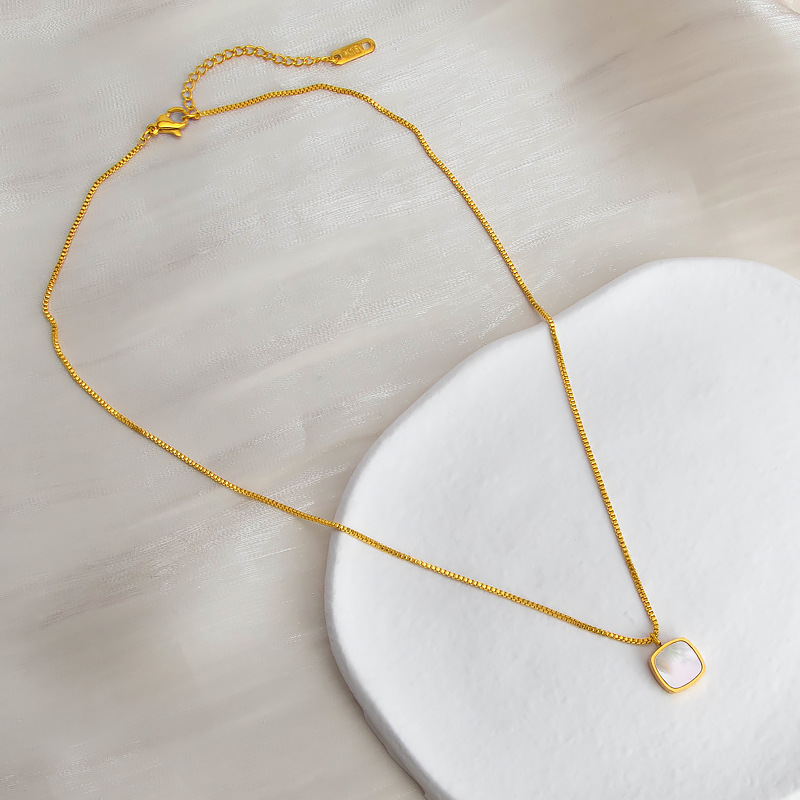 年新款方形贝母项链女百搭简约时尚轻奢气质高级钛钢颈链配饰
