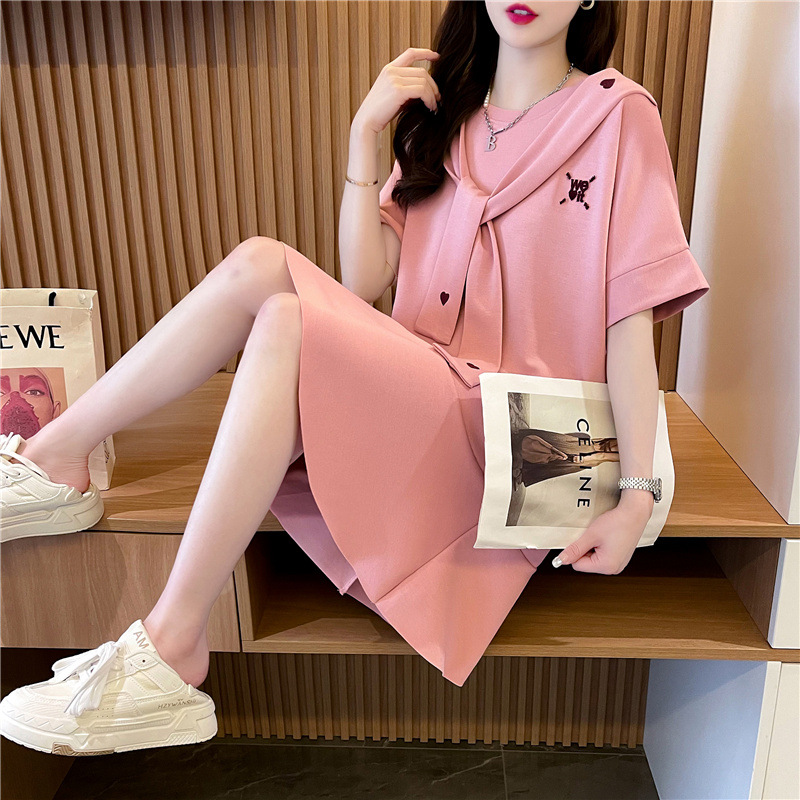 中长款设计感短袖T恤裙女新款夏季韩版系带宽松体恤裙
