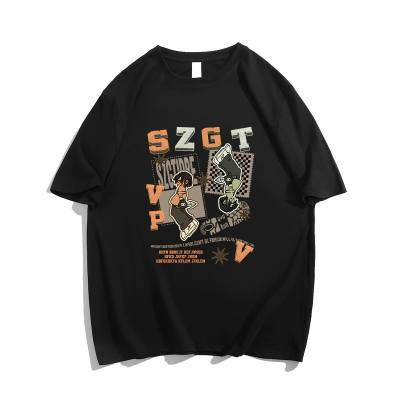 卡通字母印花短袖t恤男夏季新款纯棉潮牌复古宽松青少年半袖上衣