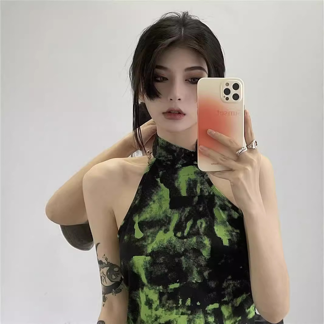 纯欲风辣妹扎染挂脖吊带背心女内搭夏季抹胸外穿打底性感无袖上衣