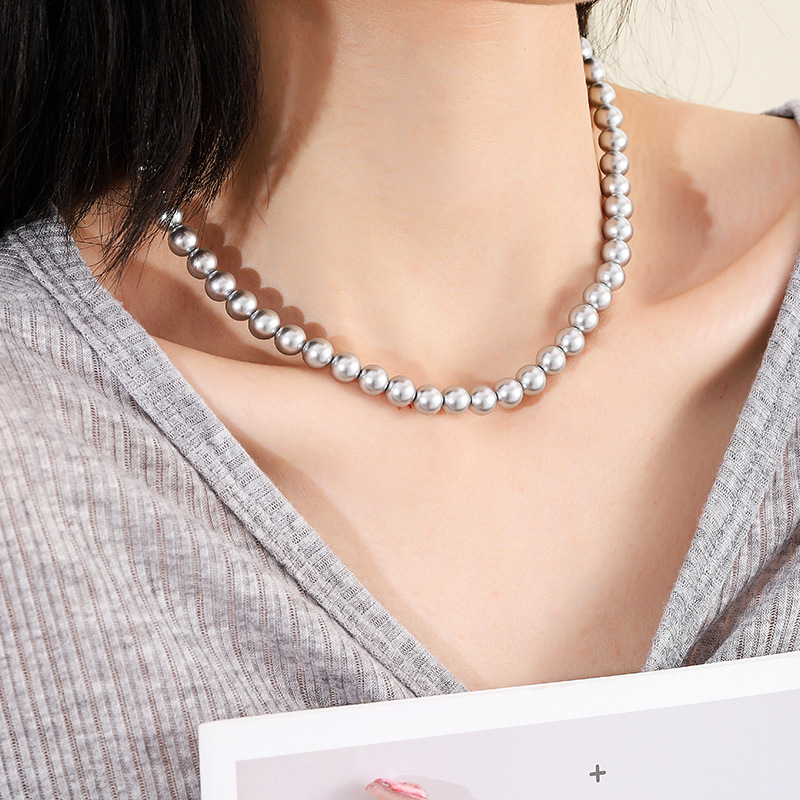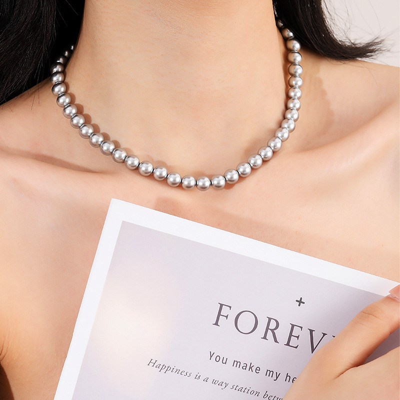 轻奢小香风银灰色珍珠项百搭高级感不掉色锁骨链新款