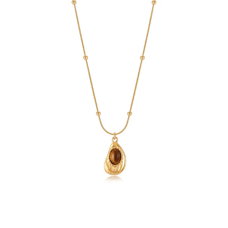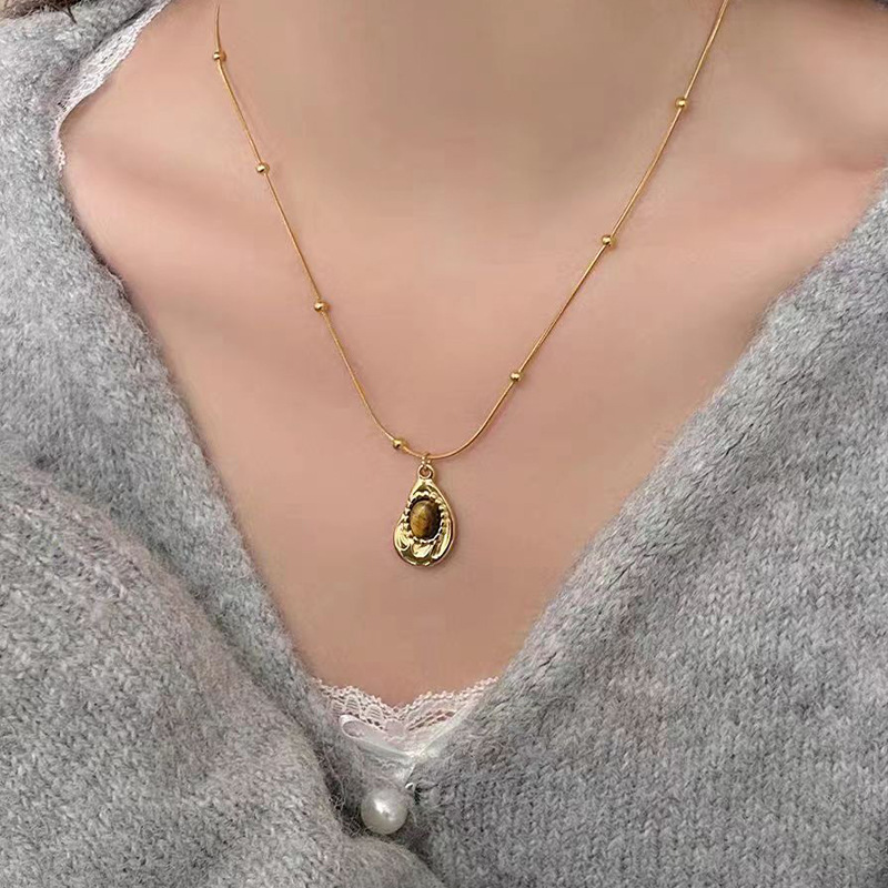 新款不规则美拉德虎眼石项链钛钢镀18k金百搭气质毛衣链锁骨女