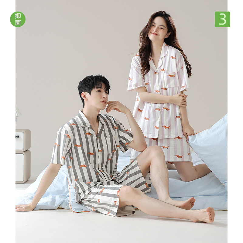 春夏季短袖纯棉情侣睡衣女凉感休闲男士家居服套装