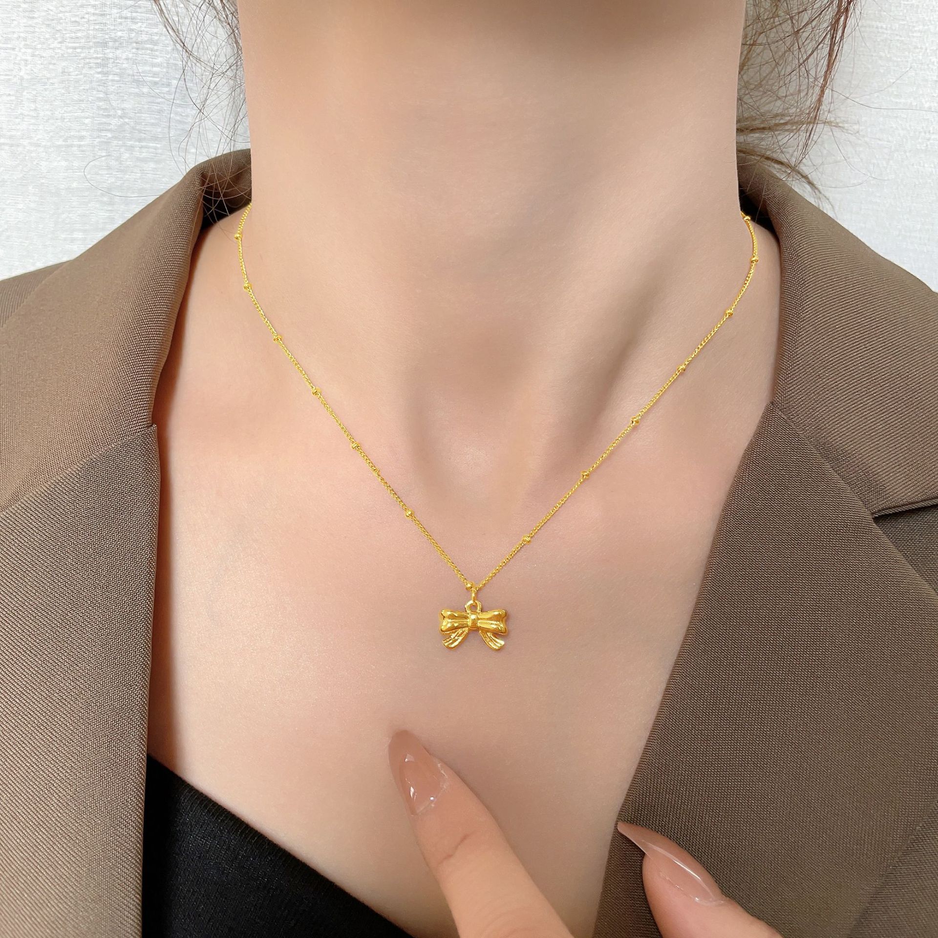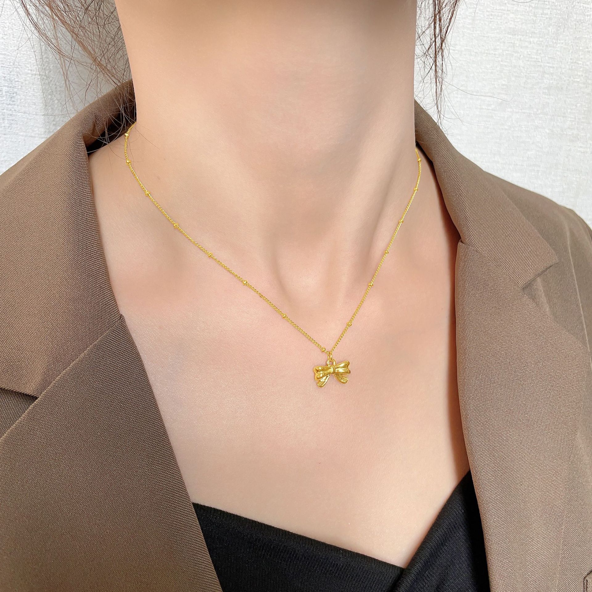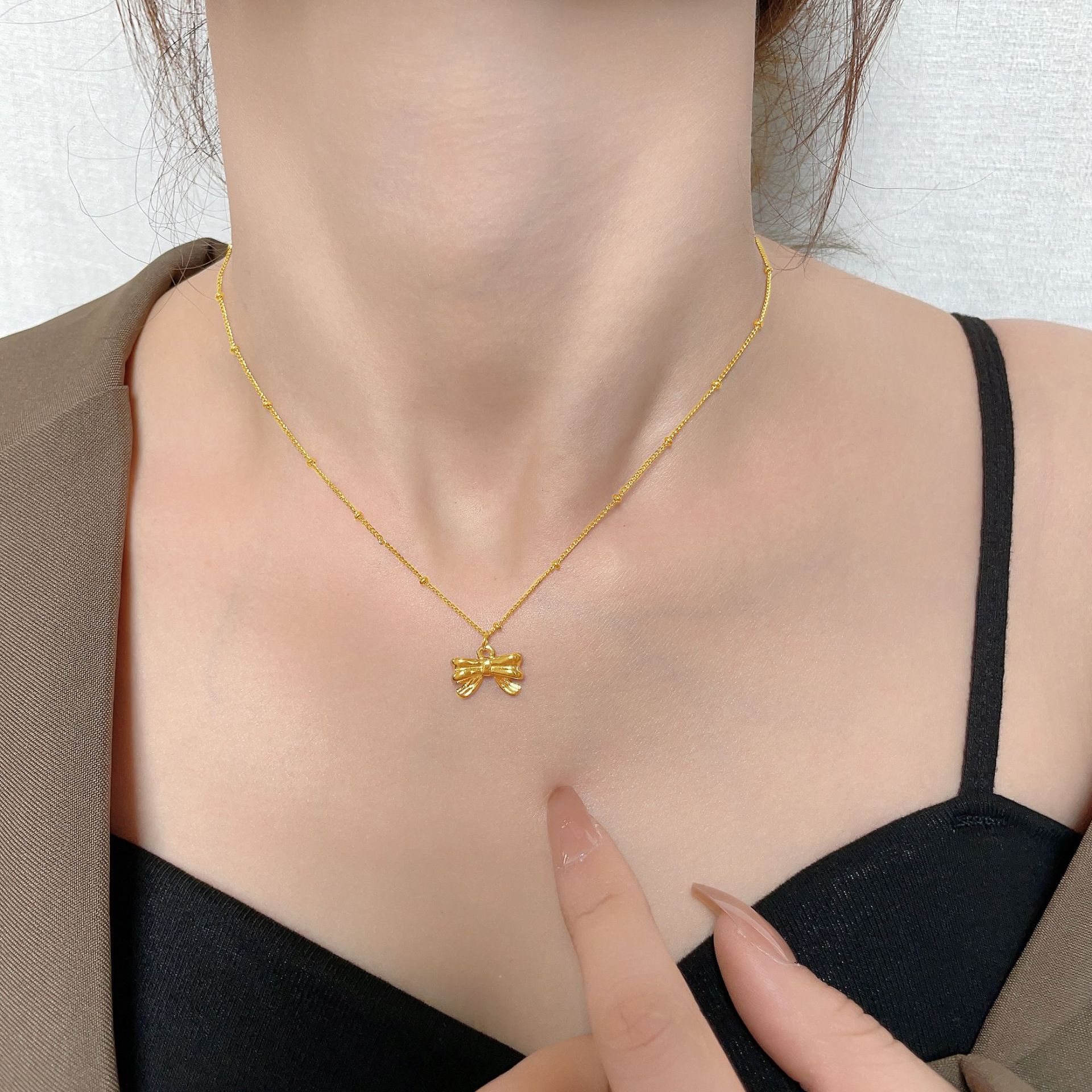 精致设计小众镀18K金蝴蝶结项链女锁骨链轻奢不掉色钛钢项链