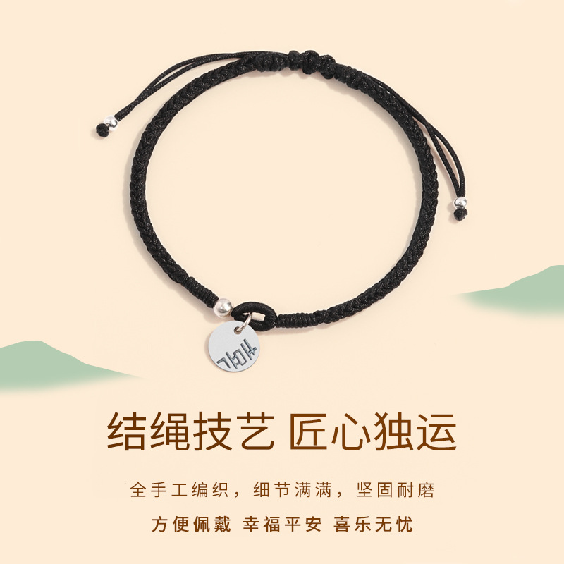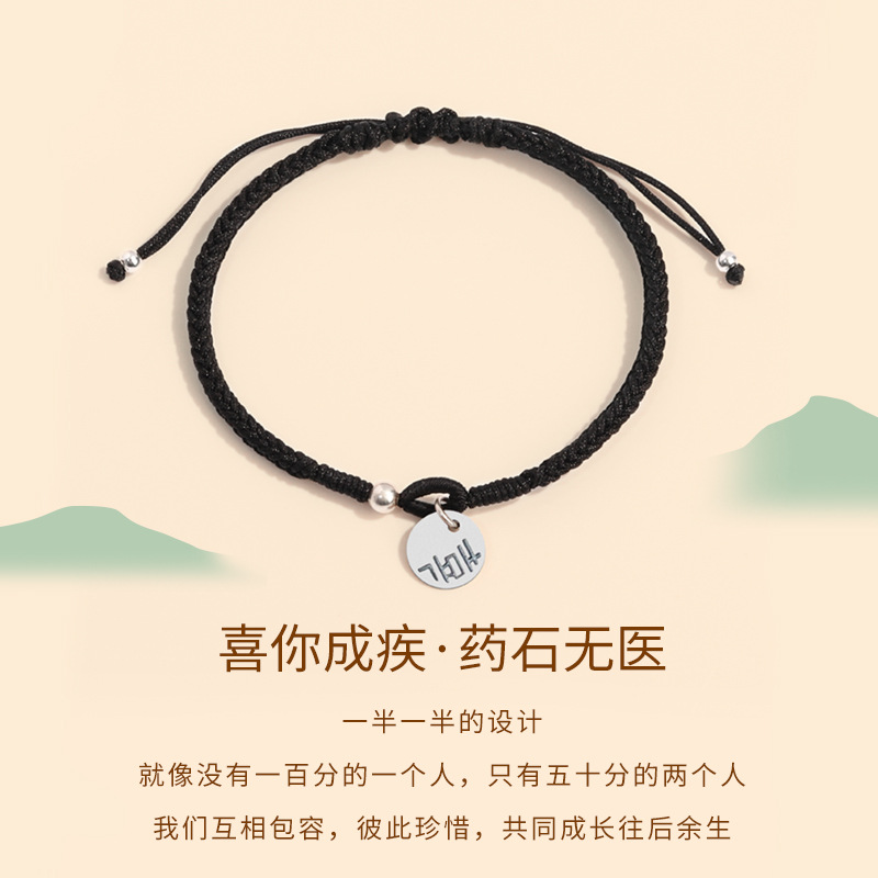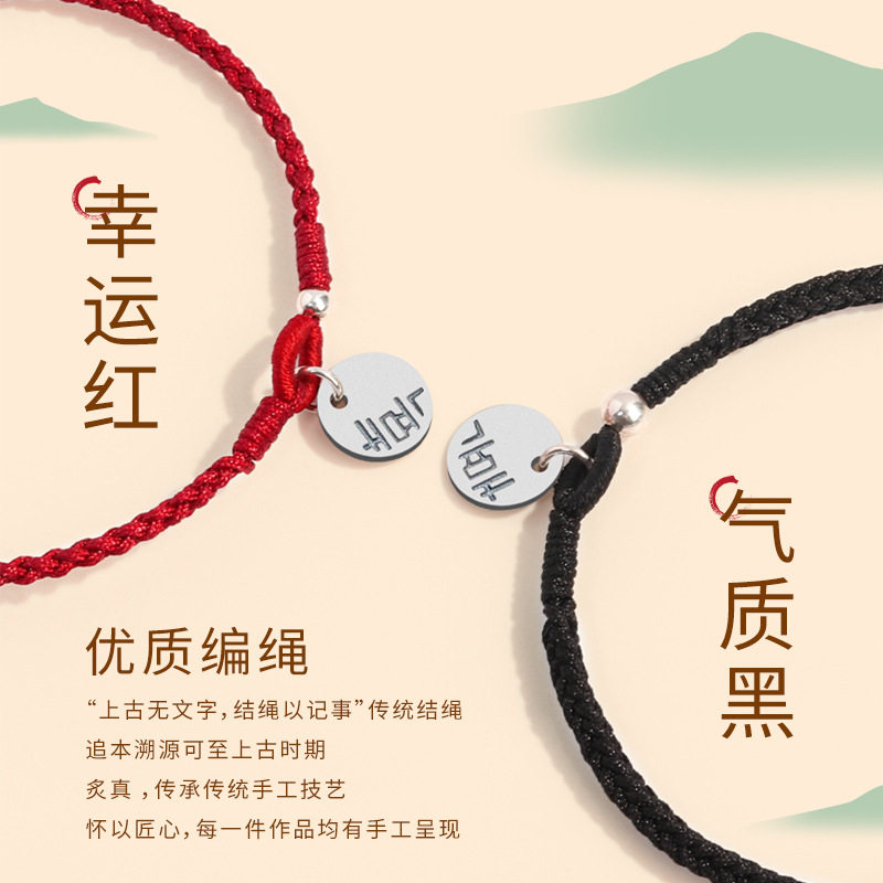 【喜】情侣款纯手工编织手链喜字吊牌可拉伸手绳原创设计礼物男女