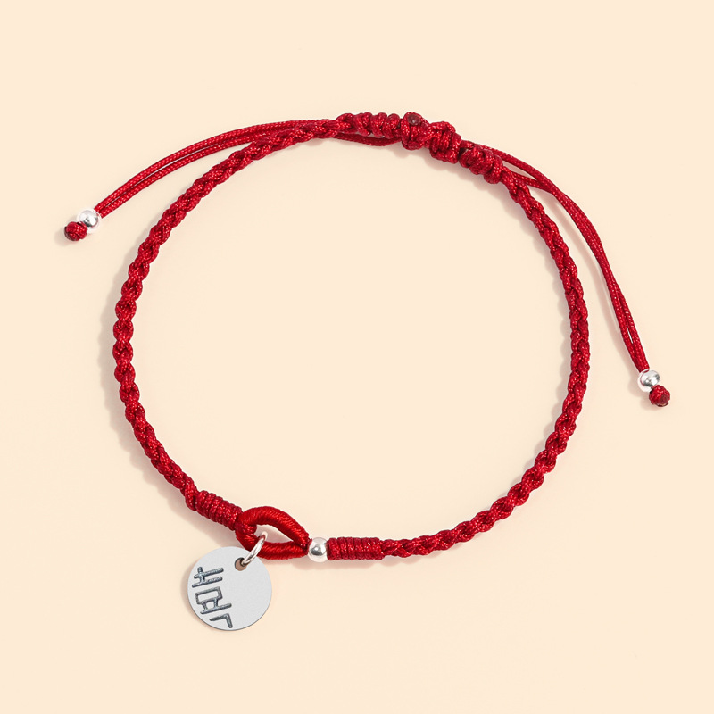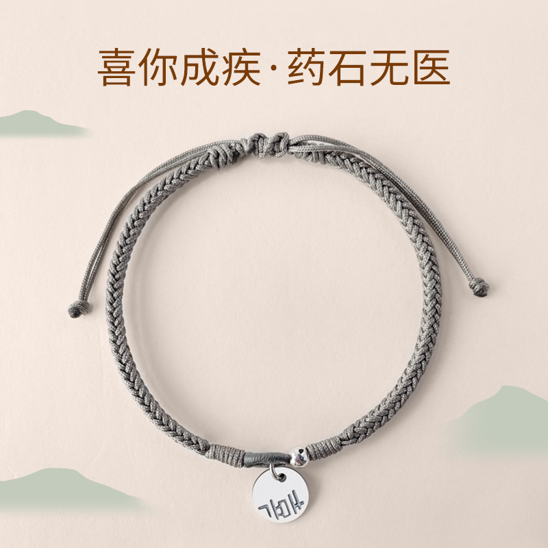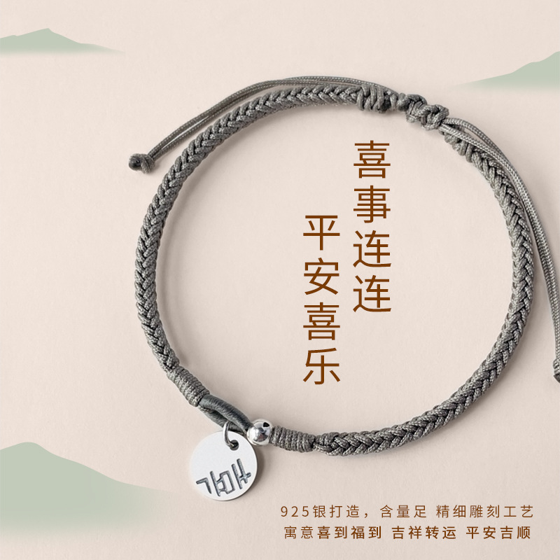 【喜】情侣款纯手工编织手链喜字吊牌可拉伸手绳原创设计礼物男女