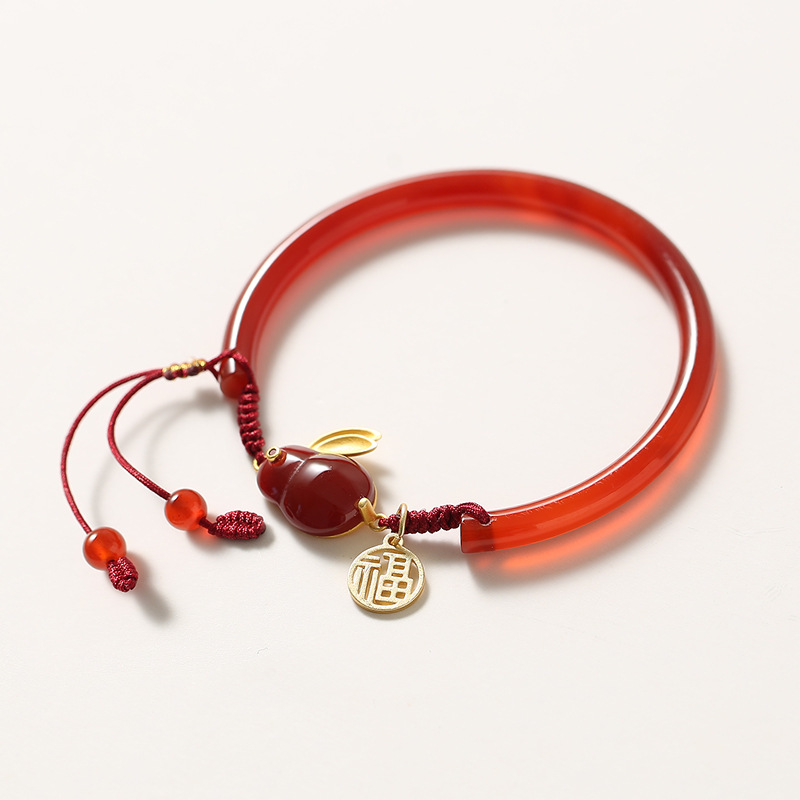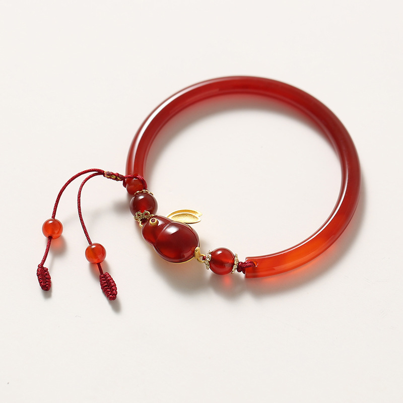 红玉髓玛瑙兔天然玛瑙手镯女款兔年本命年高级感镯子手链生日礼物