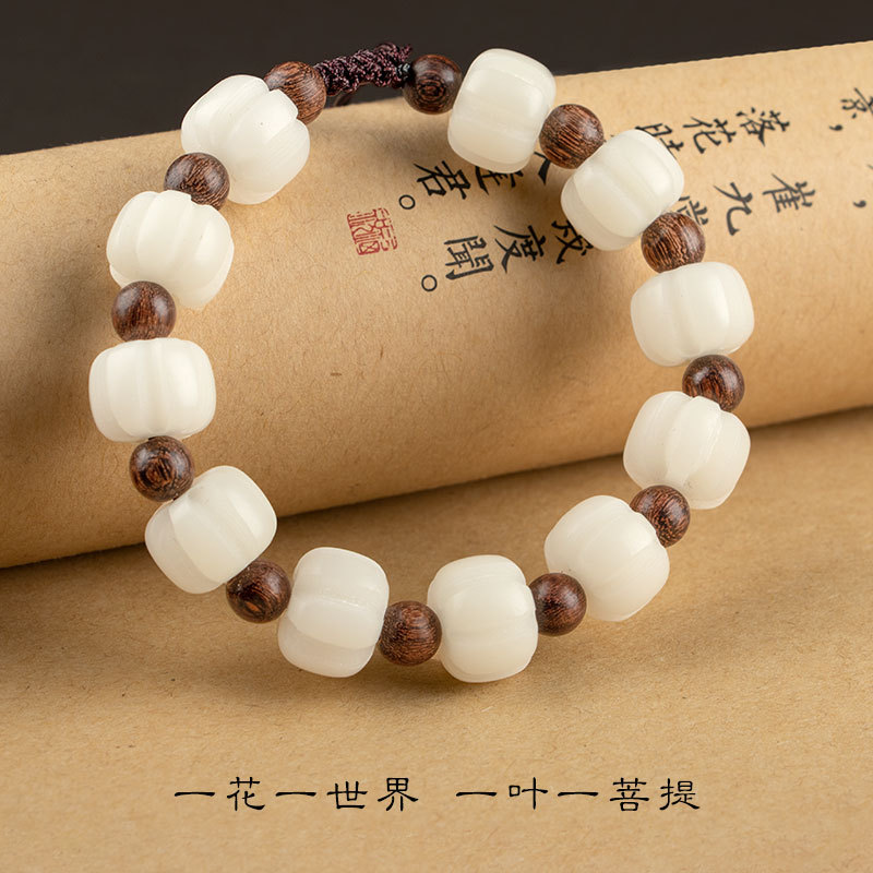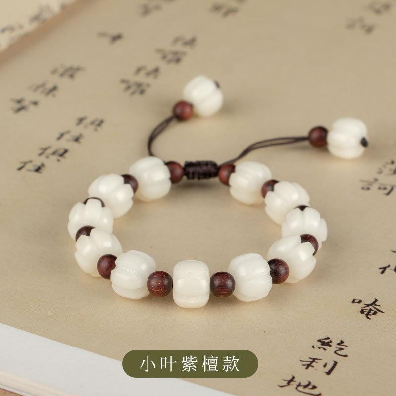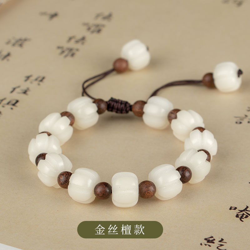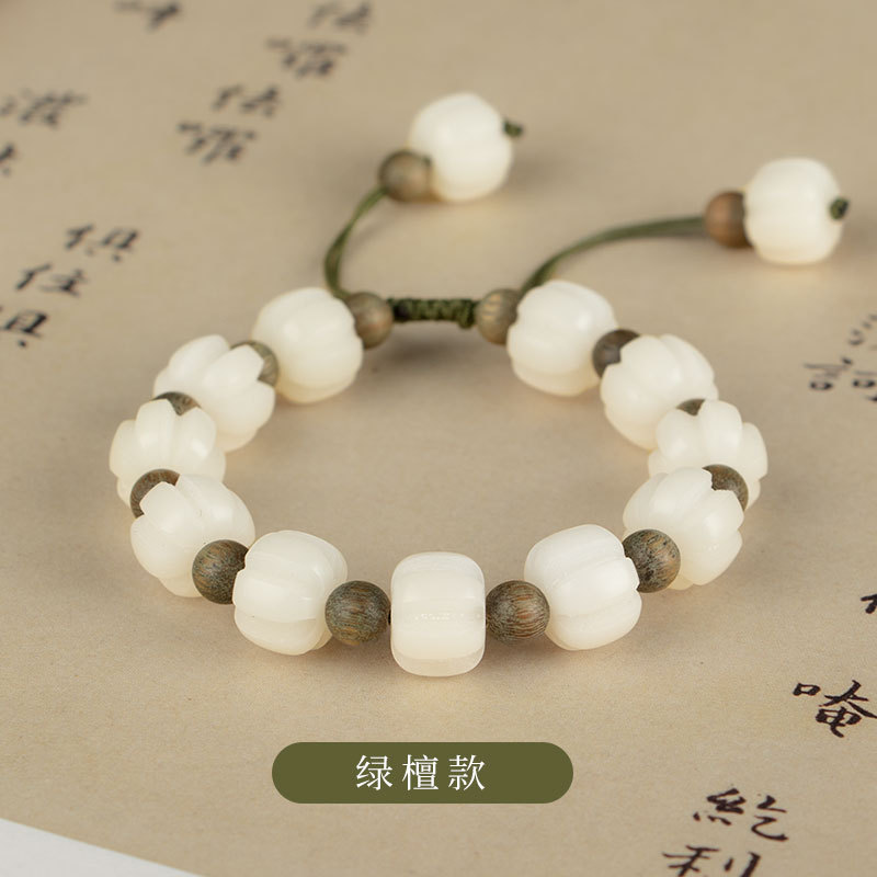 南瓜白玉菩提绿檀手链清新民族风女士手链古风男士手手串小叶紫檀