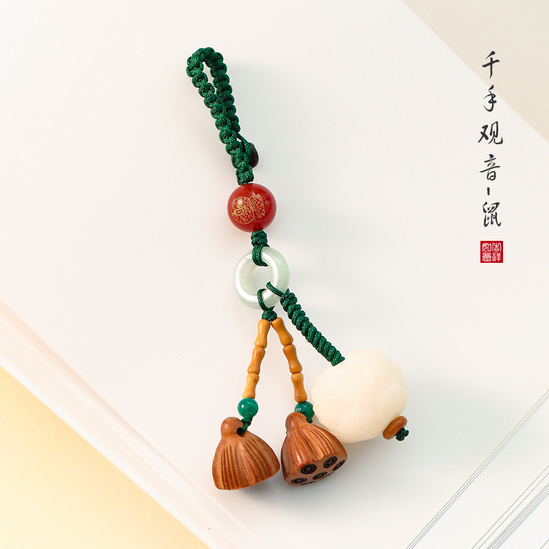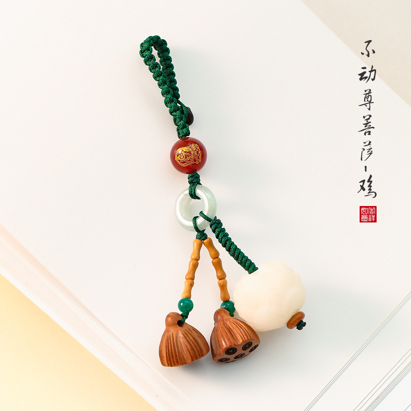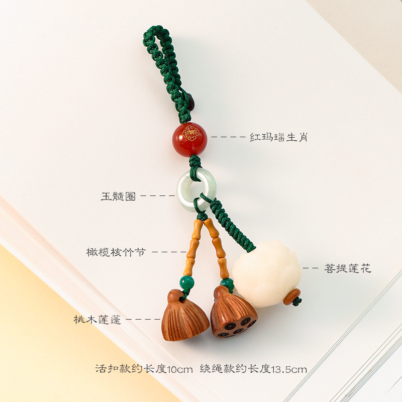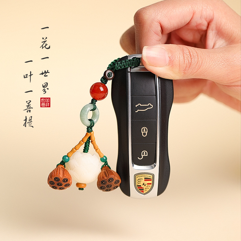 菩提根莲花汽车钥匙扣挂件红玛瑙相思豆莲蓬可爱精致手机链小吊坠