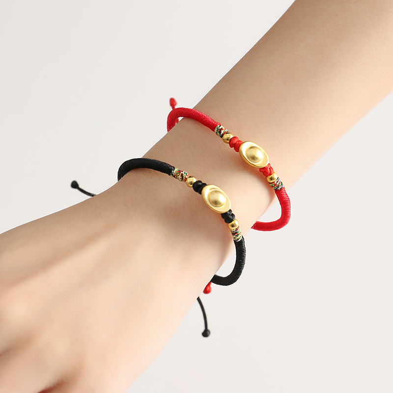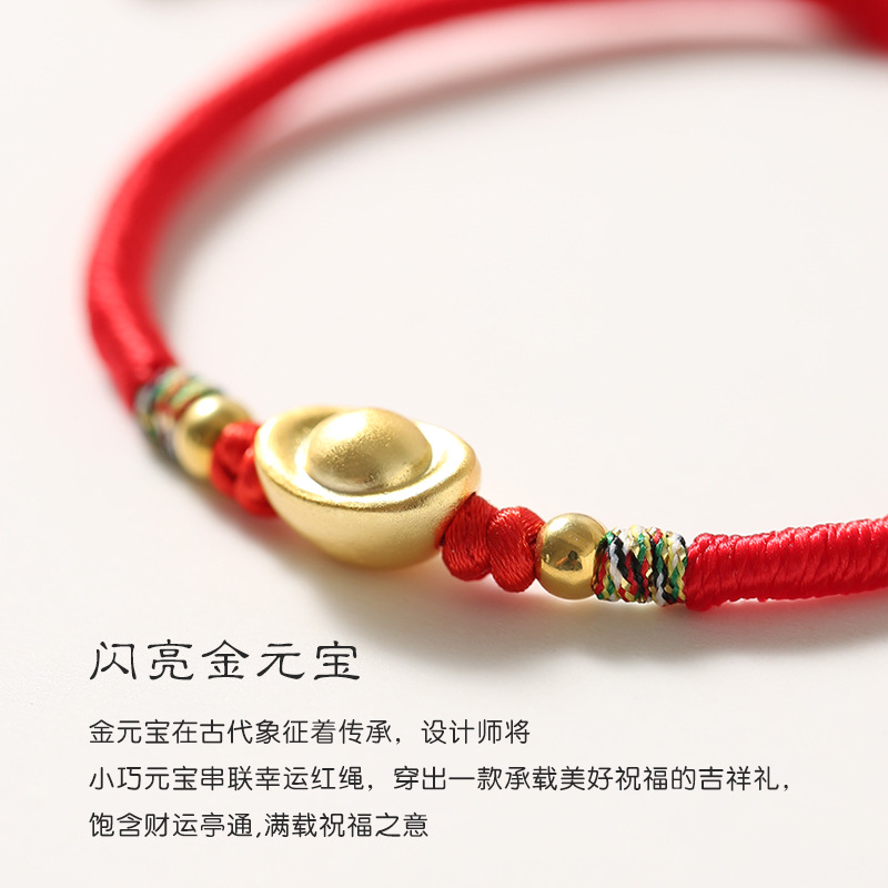 S925银元宝招财手工编织红绳手绳本命年编绳情侣款礼物生日送礼物
