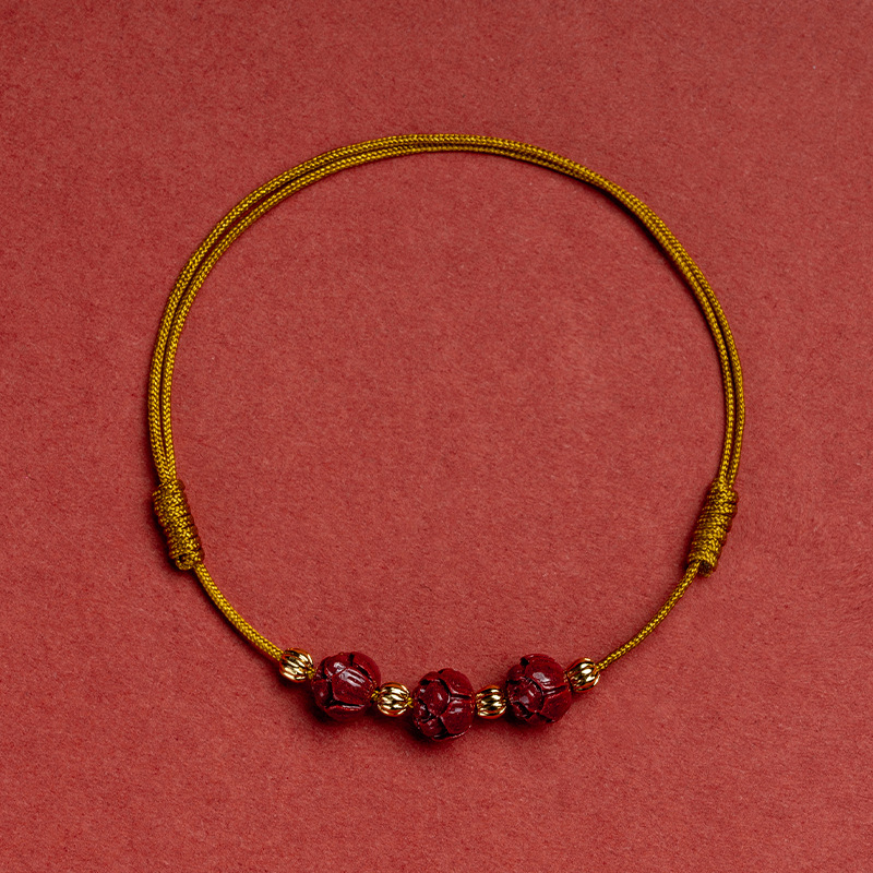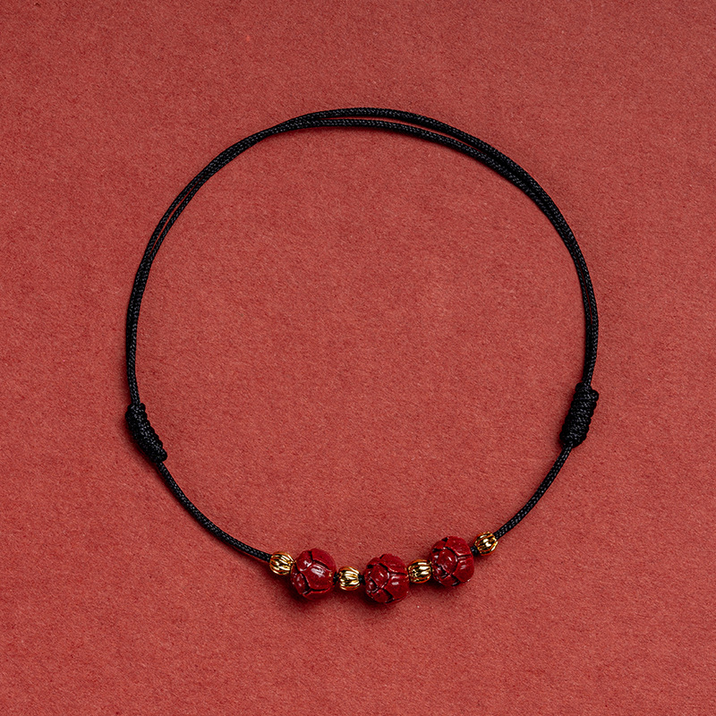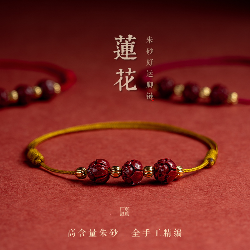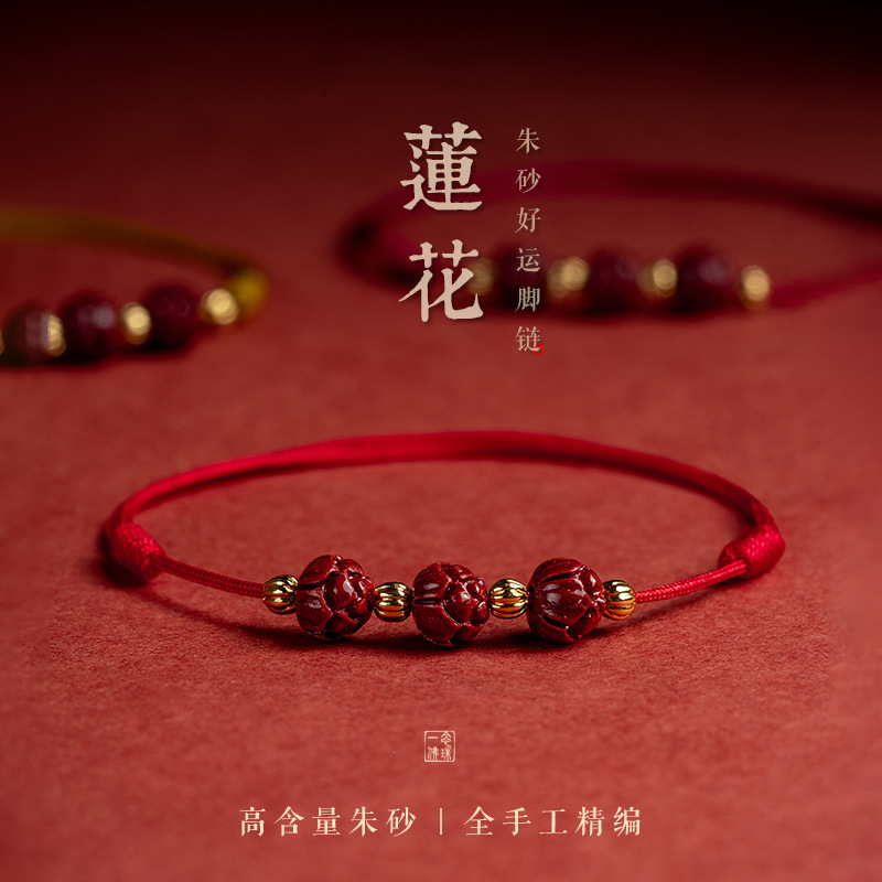 新款朱砂莲花脚链编织红绳本命年转运珠脚链女孩可伸缩调节款