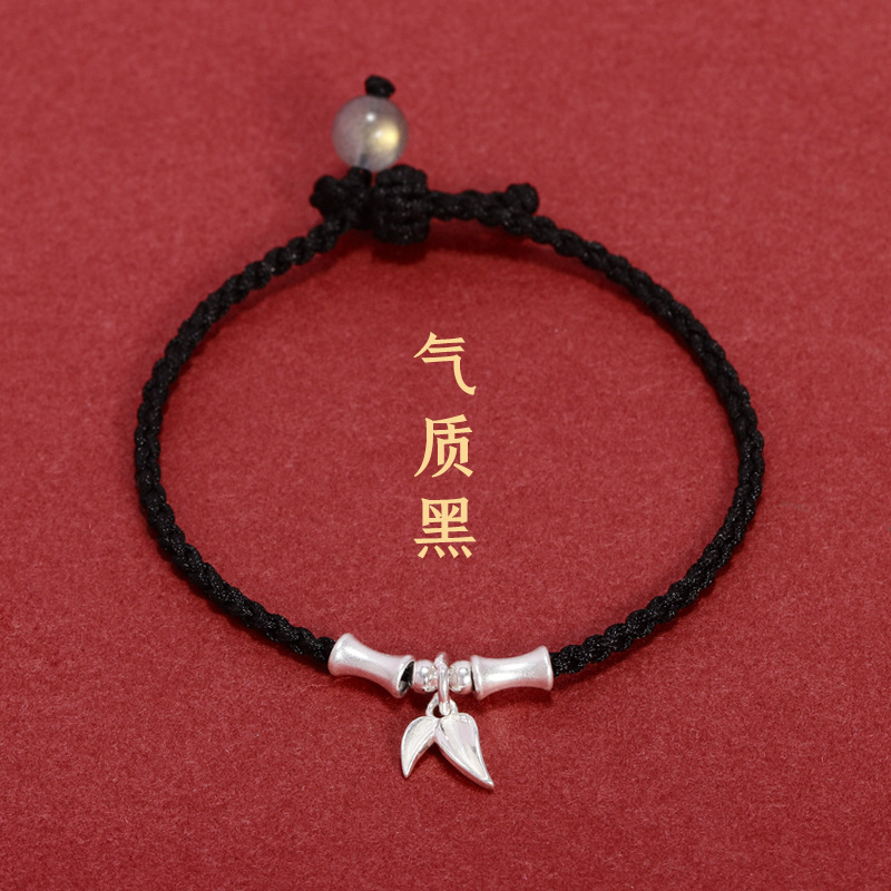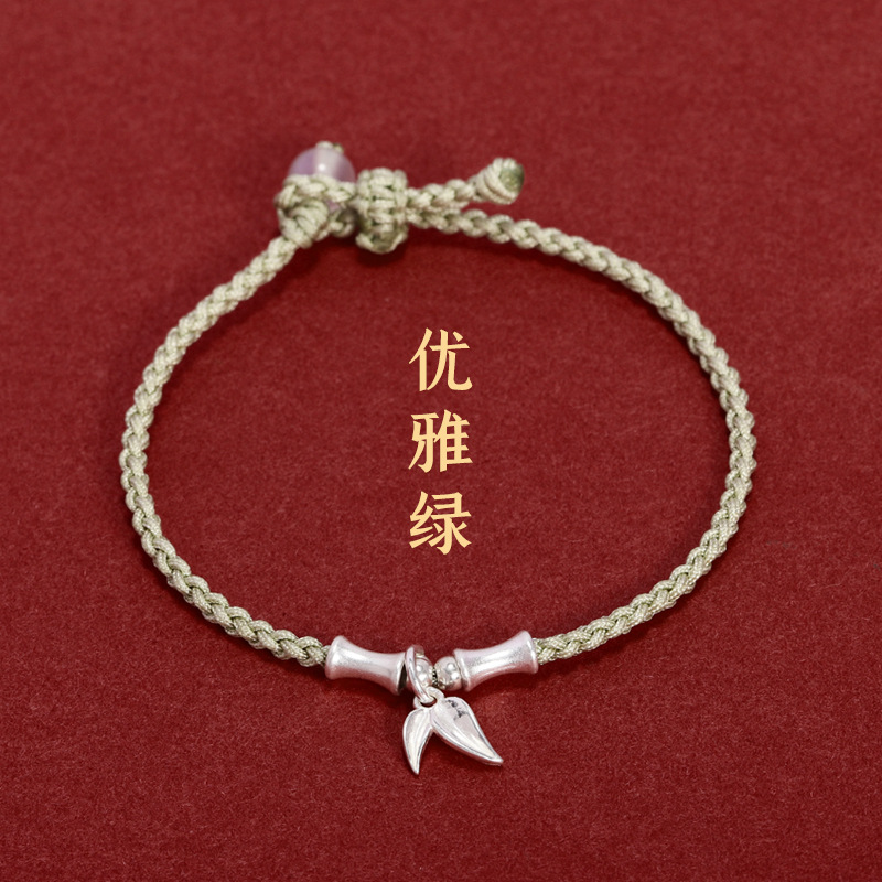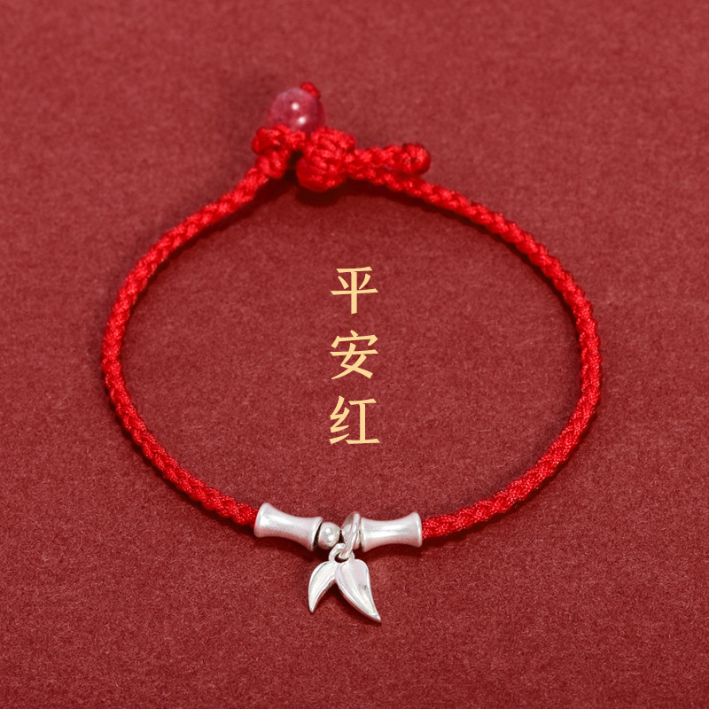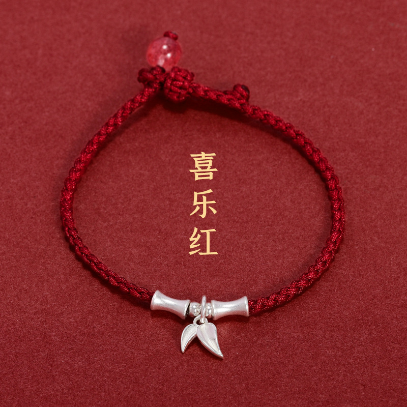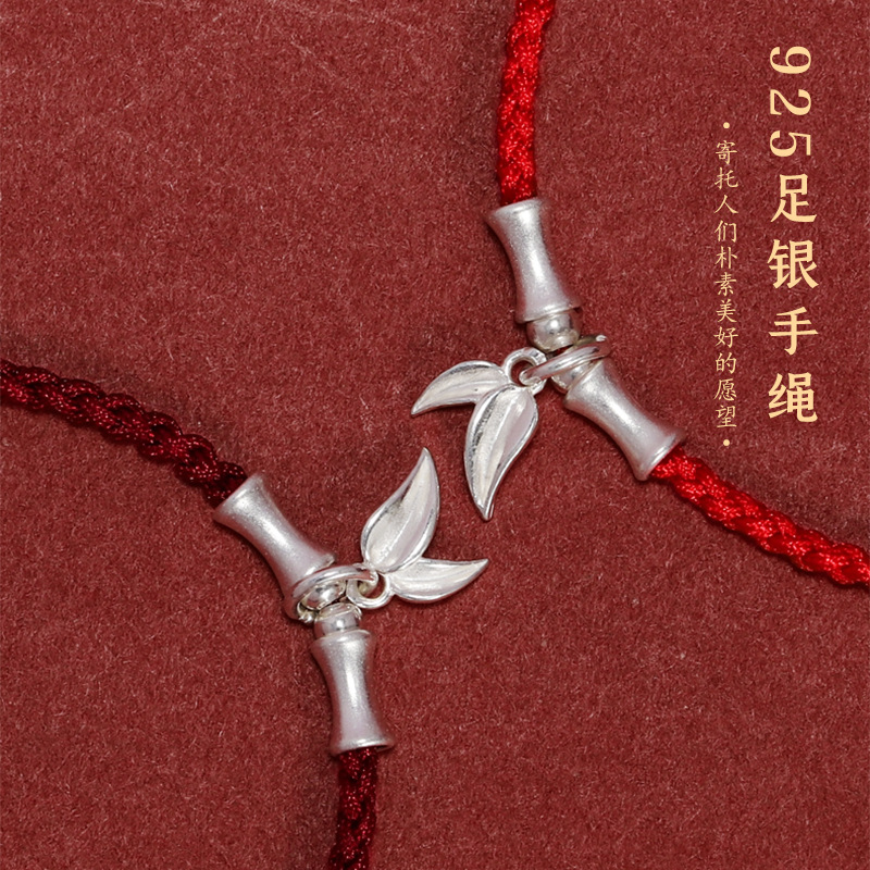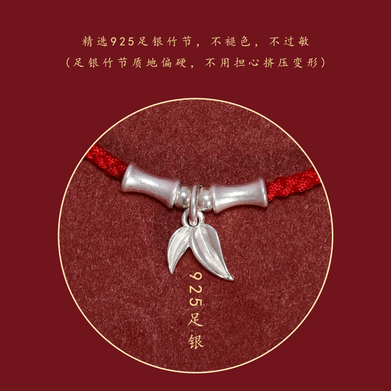 原创S925银竹节编织本命年手链女手工情侣手绳新中式国风好运红绳