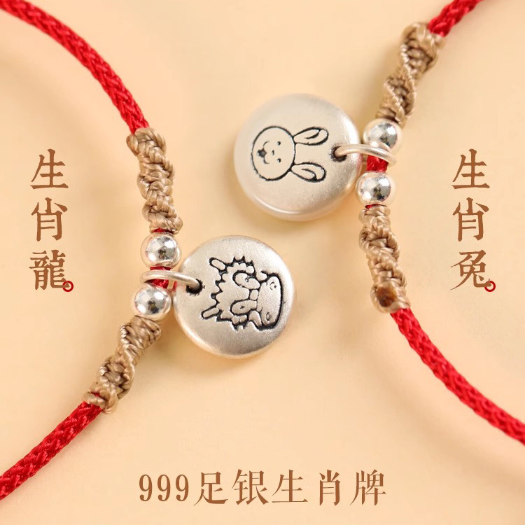- 999足银生肖手绳-兔-平安红