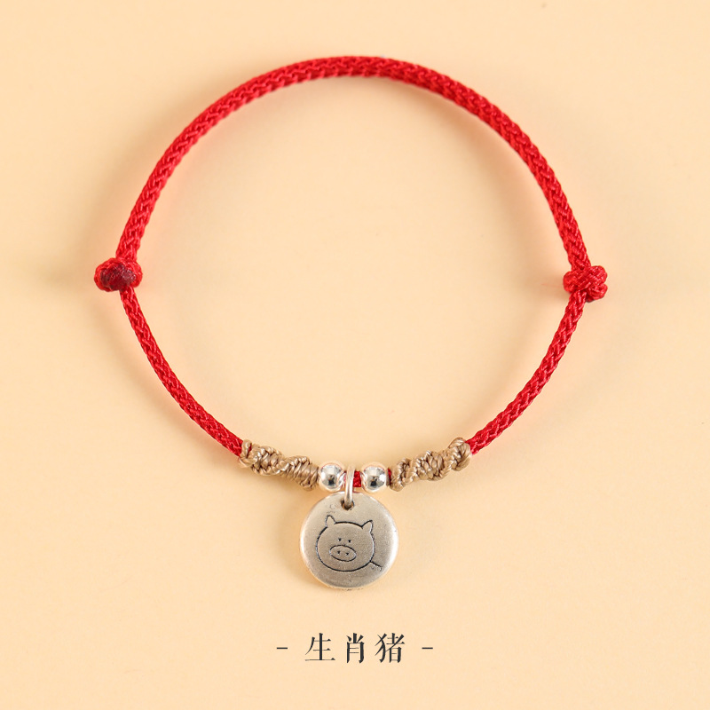 - 999足银生肖手绳-猪-平安红