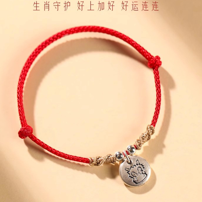 年龙年999足银红绳手链女十二生肖本命年编织绳手绳属龙情侣