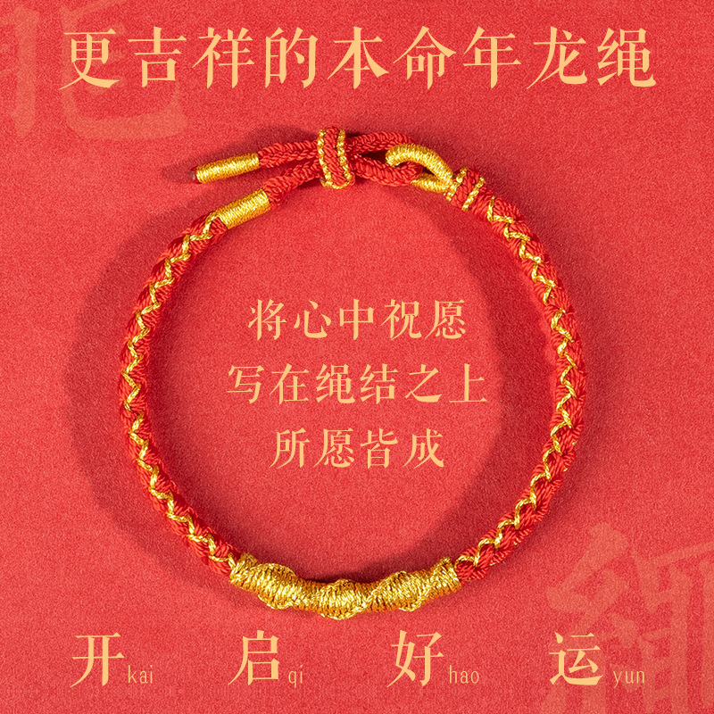 龙年本命年红绳手链女生首饰龙绳红手绳纯手工编织龙生肖礼物