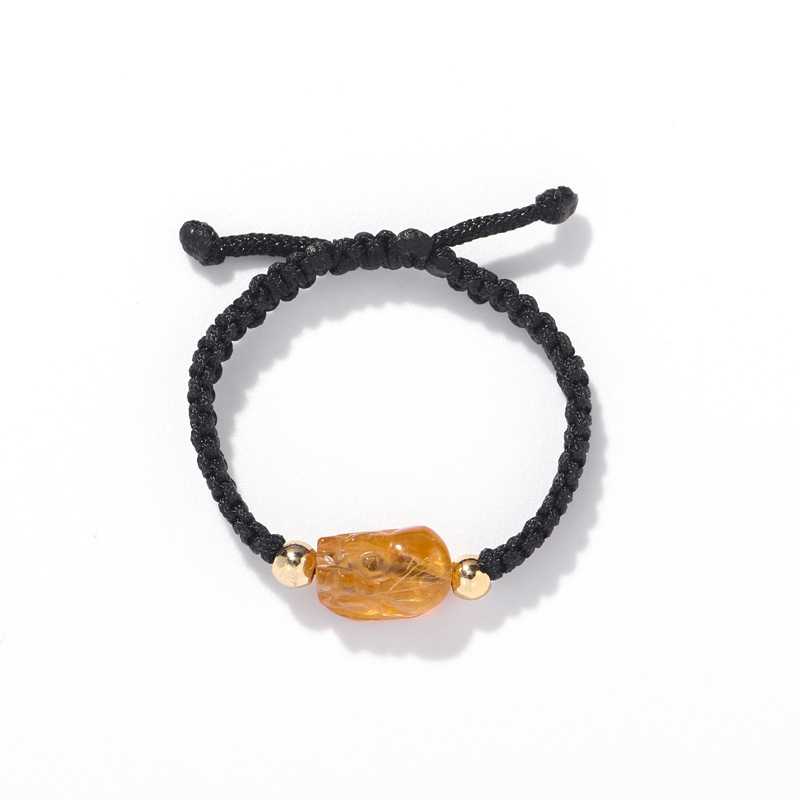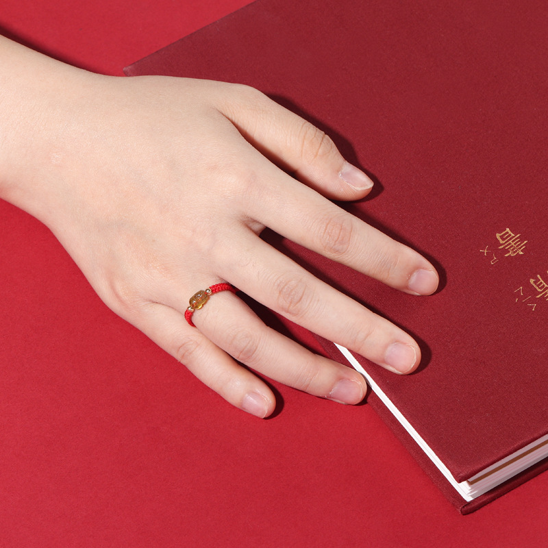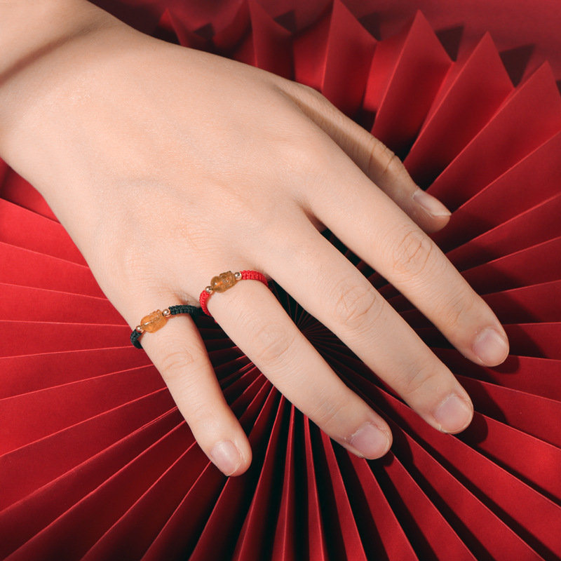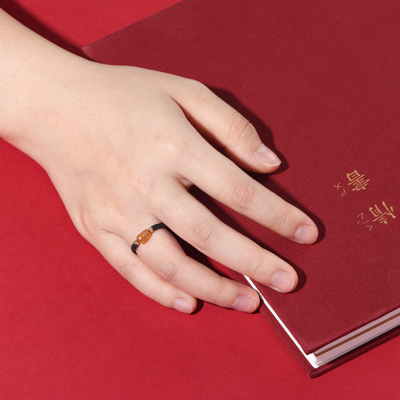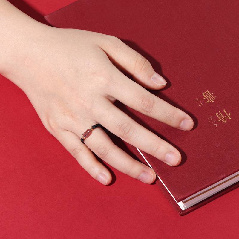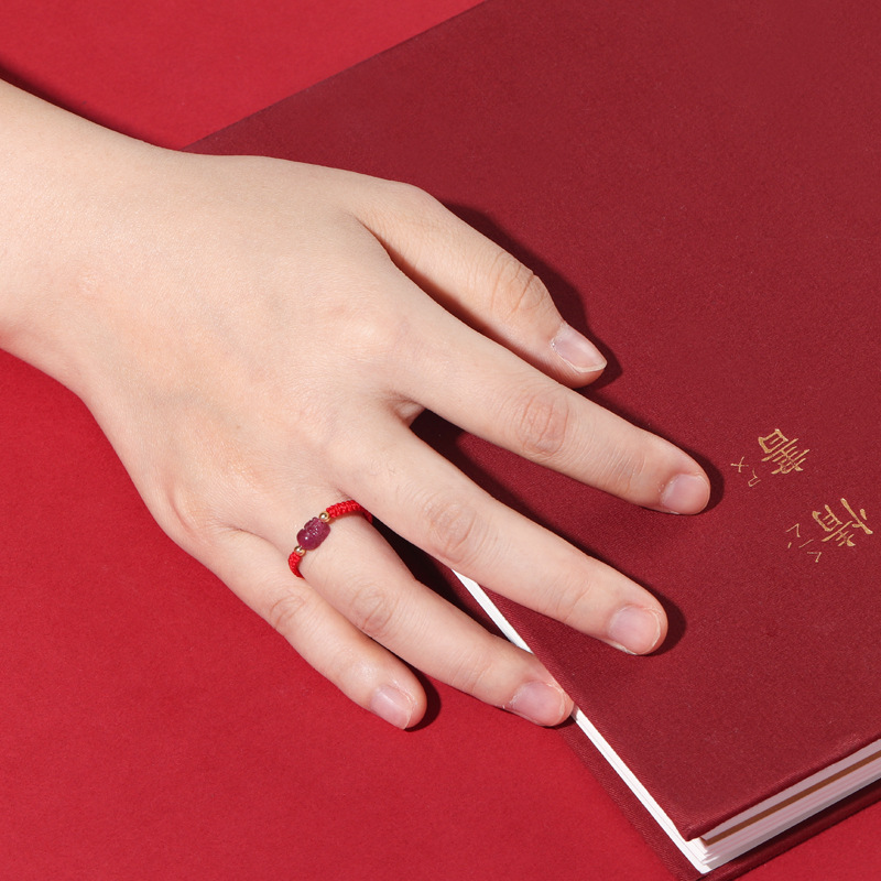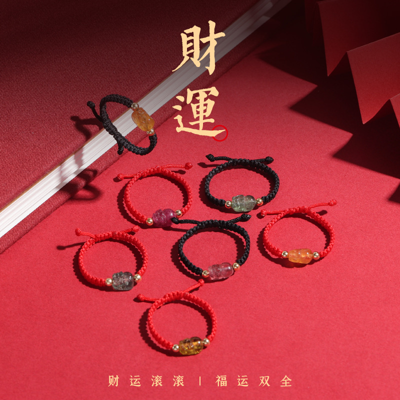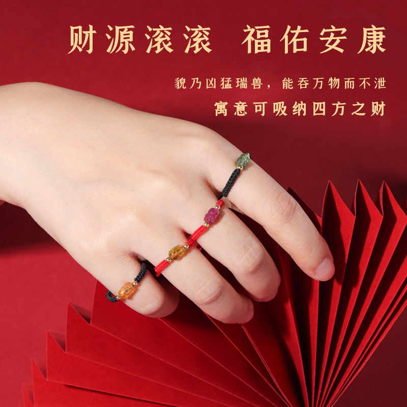 S925银天然糖果色碧玺貔貅戒指纯手工编织抽拉式多圈口七夕节礼物